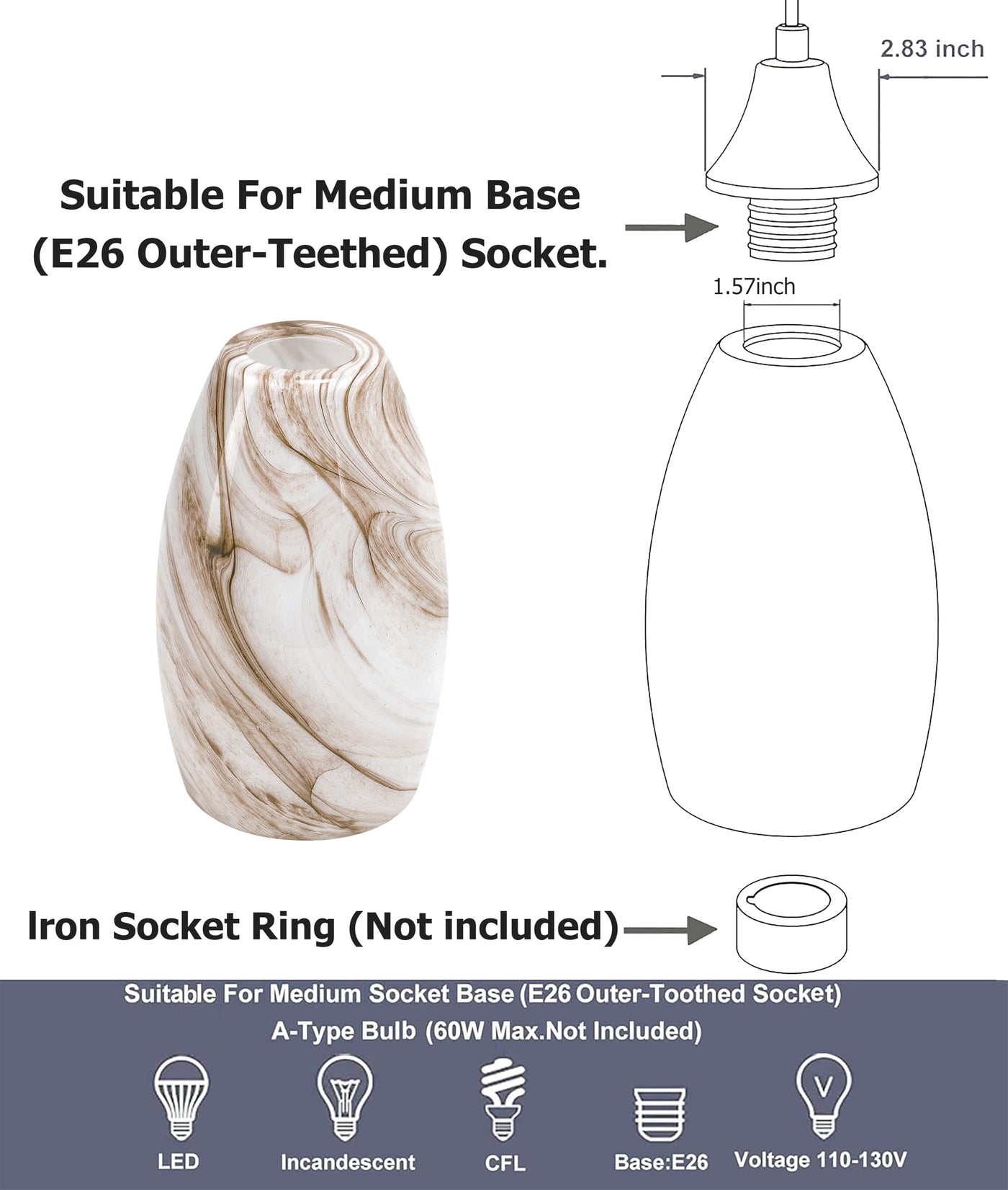 Go&So The Pendant Glass Lamp Shade Are Made Of Traditional Hand-Blown Art Glass With Heat Resistance. Due To Its Hand-Made Nature Each Piece Of Blown Glass Will Vary In Color And Pattern.