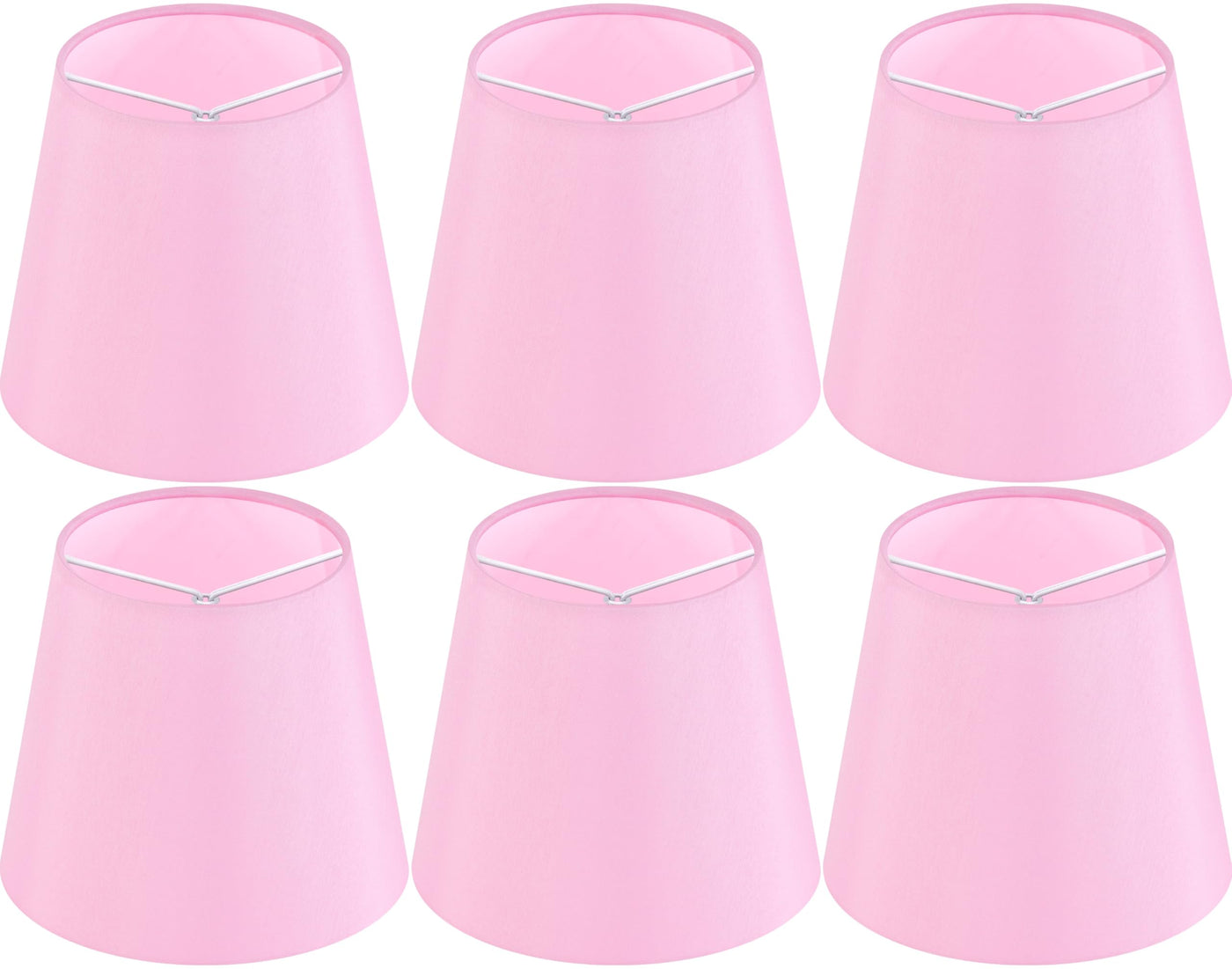 Go&So Set Of 6 Pink Small Lamp Shade (Clip On Bulb), Faux Silk Mini Lampshades For Chandelier, Fabric Lamp Shade For Table Lamp