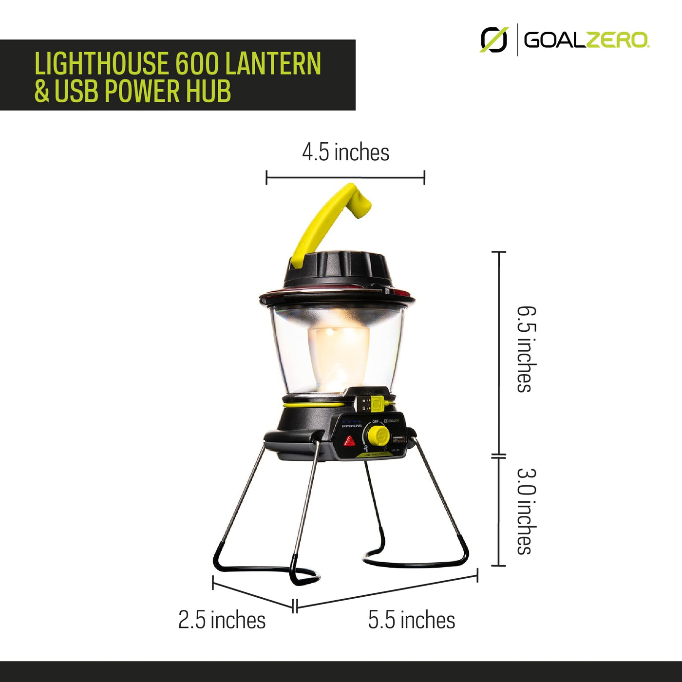 Your adventure shouldn’t stop when the sun goes down. With the Lighthouse 600 Camping Lantern, you never have to stop chasing the next horizon. Solar rechargeable with the Nomad 10 Solar panel (sold separately). This small lantern lets you enjoy up to 600 lumens of light anywhere you go, and you can easily charge it from any USB port or get up to 10 minutes of light in a pinch by using the attached hand crank. When fully expanded, this camp light measures 4 1/2" W x 5" L x 6 1/2" H, and its legs collapse and fold into themselves, making it super portable. The entire camping lamp weighs only 1.1 lbs., so you can easily grab the attached handle and take your emergency lantern with you anytime, anywhere. You can even use the lantern to recharge small devices like phones or flashlights by plugging them into the USB port. Power outages have got nothing on you with the Lighthouse 600 rechargeable camping lantern!