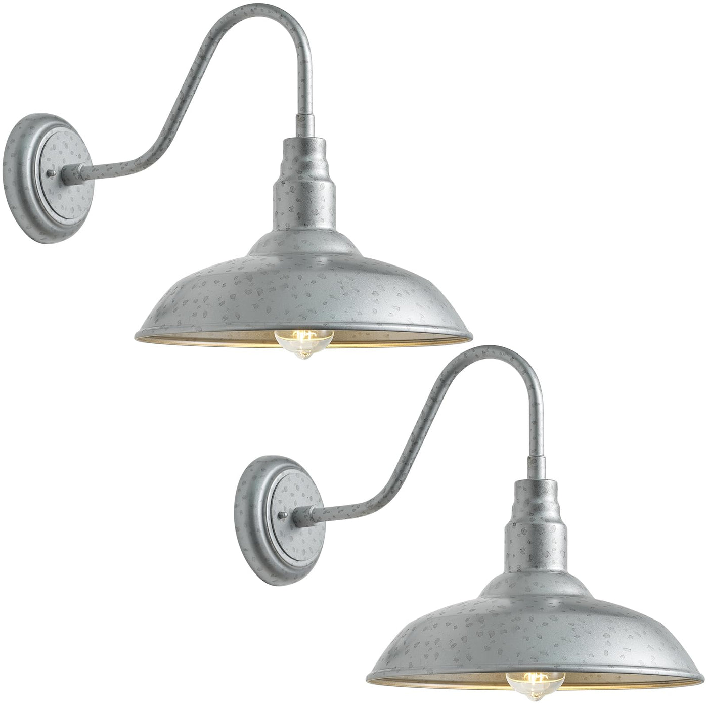 Goalplus 10In. Dome Outdoor Gooseneck Barn Light, 2 Pack Galvanized Steel Exterior Gooseneck Lighting Fixture With Wall Mount Fa