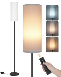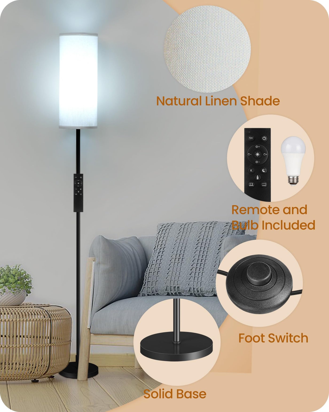 Goebleson Dimmable Floor Lamp For Living Room, Corner Floor Lamp With Remote, 66'' Standing Tall Lamp, Linen Lampshade, 10W 800L