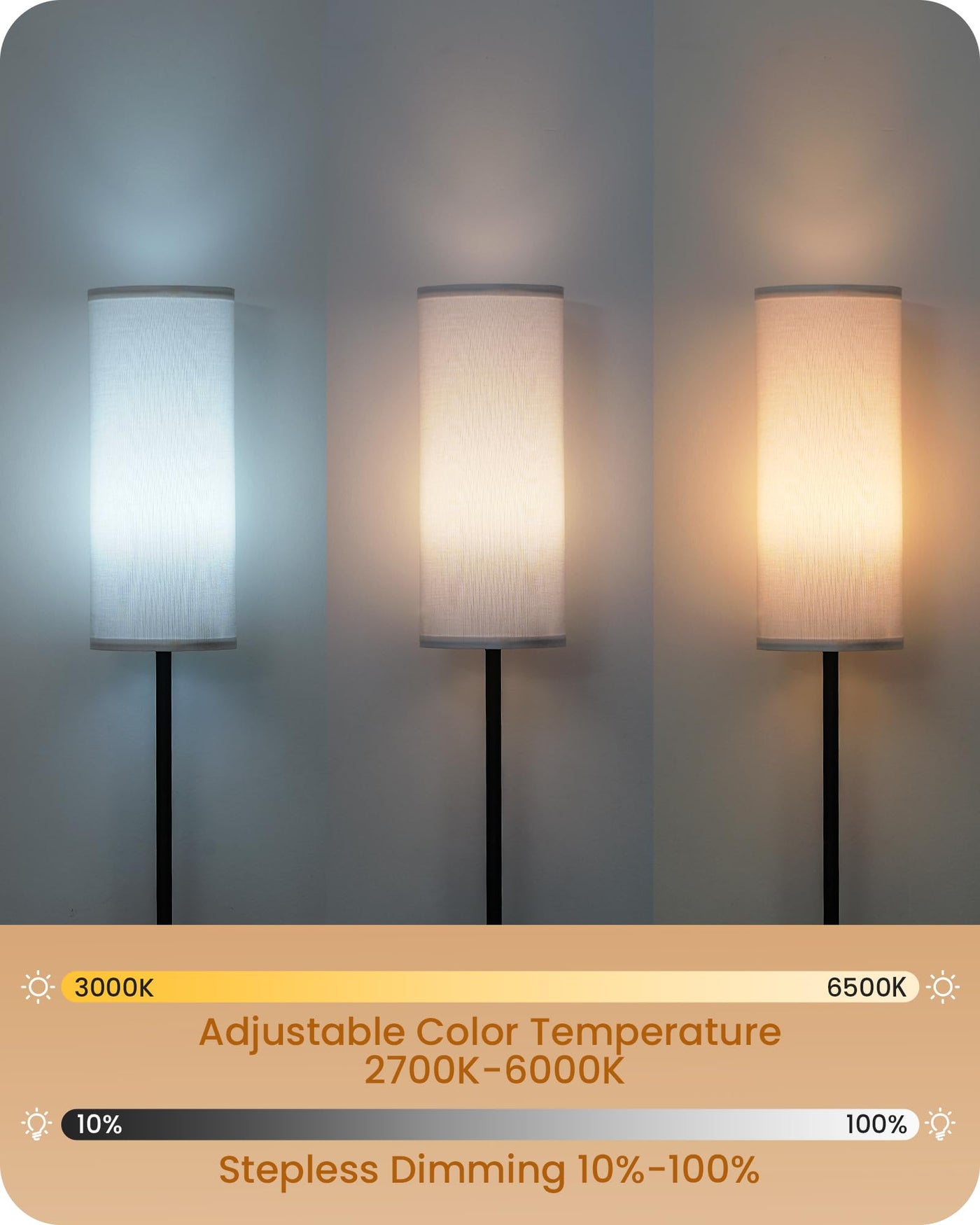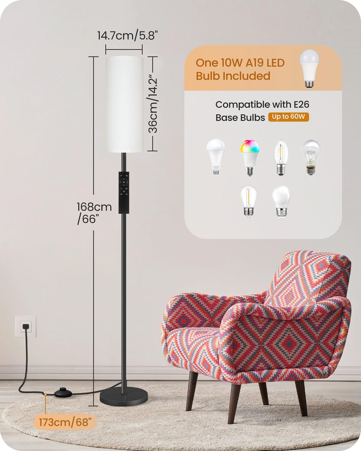 GOEBLESON Modern Floor Lamp, Embellish Your Living Space with Art! - The compact size makes it a perfect match for your living room sofa, bedroom nightstand and study desk or any other corner. - Equipped with an 10W 800LM bulb that is adjustable in brightness from 10%-100%, and dimmable color temperature from 3000K-6500K. - The remote control and foot switch design eliminates the trouble of searching for the switch. - Its modern and minimalist style blends seamlessly with diverse home decor styles. - It has a sturdy base and stands firmly without shaking, ensuring safety. - Installation is simple and requires no tools or screws to connect the metal rod, allowing for a quick setup process. This floor lamp provides an ideal lighting solution that combines aesthetics and practicality to brighten your space and enhance your home.
