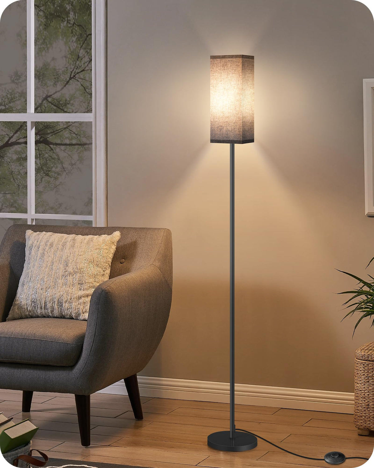 Goebleson Modern Floor Lamp, Embellish Your Living Space With Art! - The Compact Size Makes It A Perfect Match For Your Living Room Sofa, Bedroom Nightstand And Study Desk Or Any Other Corner. - Its Modern And Minimalist Style Blends Seamlessly With Diverse Home Decor Styles. - It Has A Sturdy Base And Stands Firmly Without Shaking, Ensuring Safety. - The Foot Switch Design Eliminates The Trouble Of Fumbling Around For The Switch Or Searching For The Remote Control. - The Shade Is Crafted From Linen Fabric, While The Post And Base Are Made Of Metal. The Premium Materials Lay A Solid Foundation For The Lamp To Last For A Long Time. - Installation Is Simple And Requires No Tools Or Screws To Connect The Metal Rod, Allowing For A Quick Setup Process. This Floor Lamp Provides An Ideal Lighting Solution That Combines Aesthetics And Practicality To Brighten Your Space And Enhance Your Home.