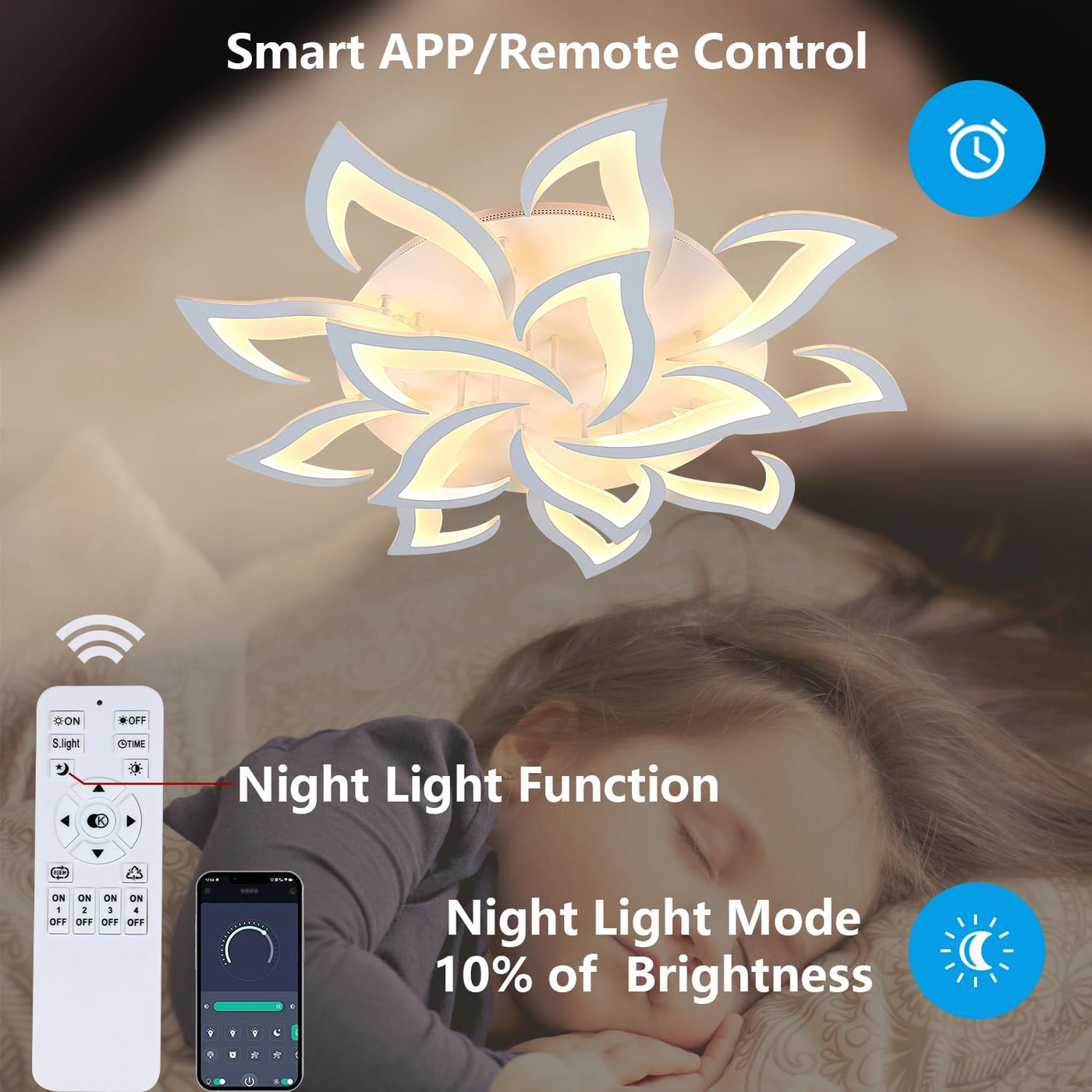 Goeco Modern Ceiling Light, 14-Petals LED Dimmable White Acrylic Flower Design Flush Mount Ceiling Light, 3000K-6500K with APP/R