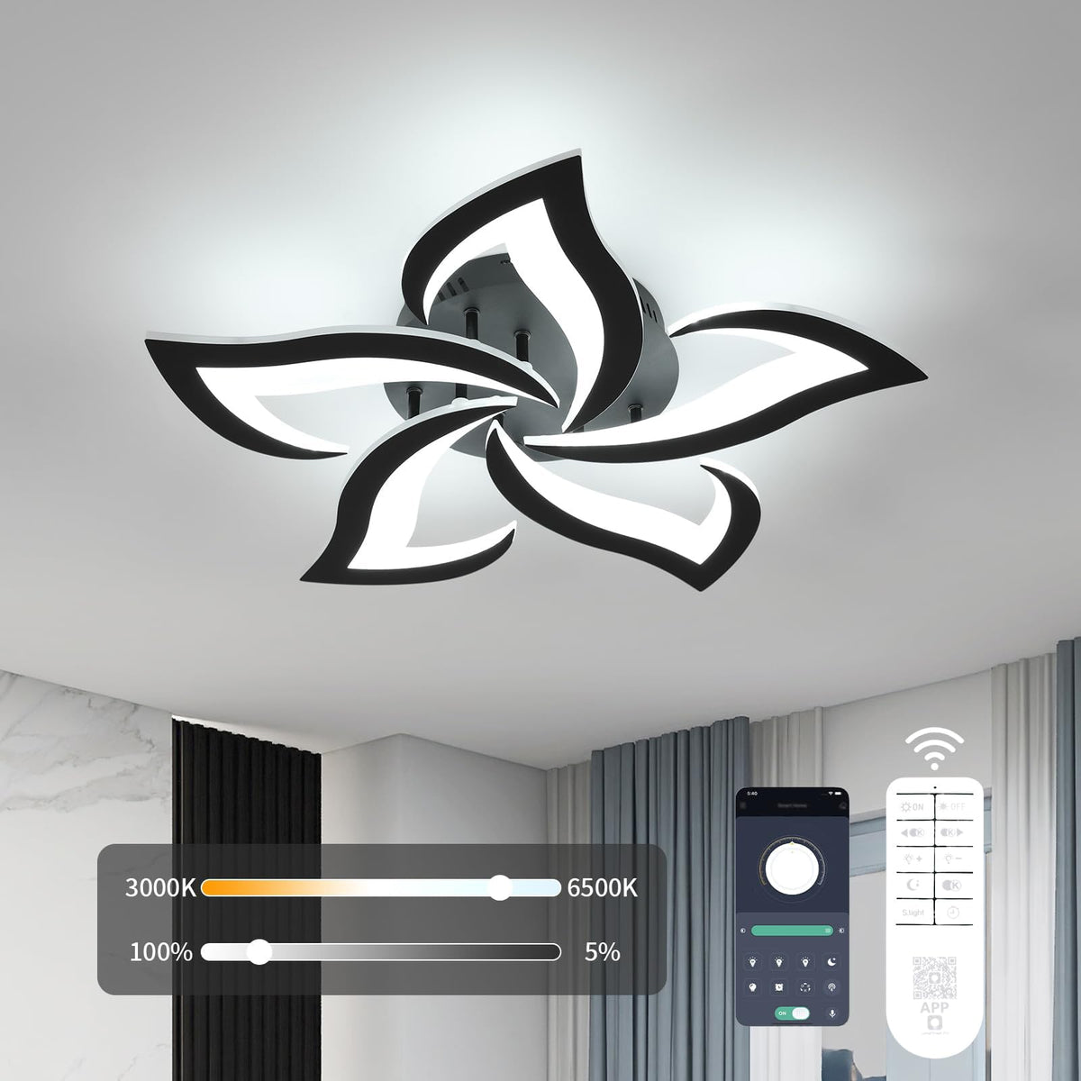 Goeco Modern Flower Flush Mount Ceiling Light, 5-Petals, Dimmable LED, 3000K-6500K, Black, Model 30839726