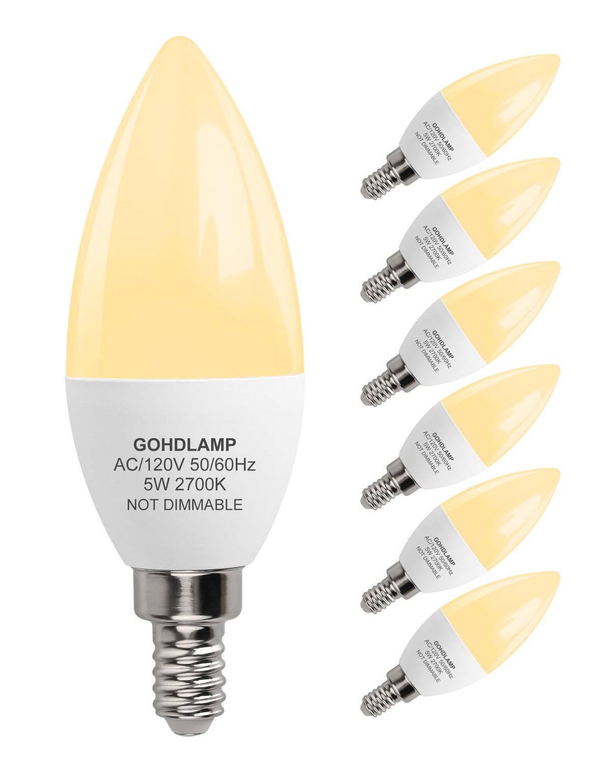 Q: What type of base do these bulbs use?A: These bulbs use a standard E12 candelabra base. This makes them compatible with most chandeliers, pendant lights, and ceiling fans.