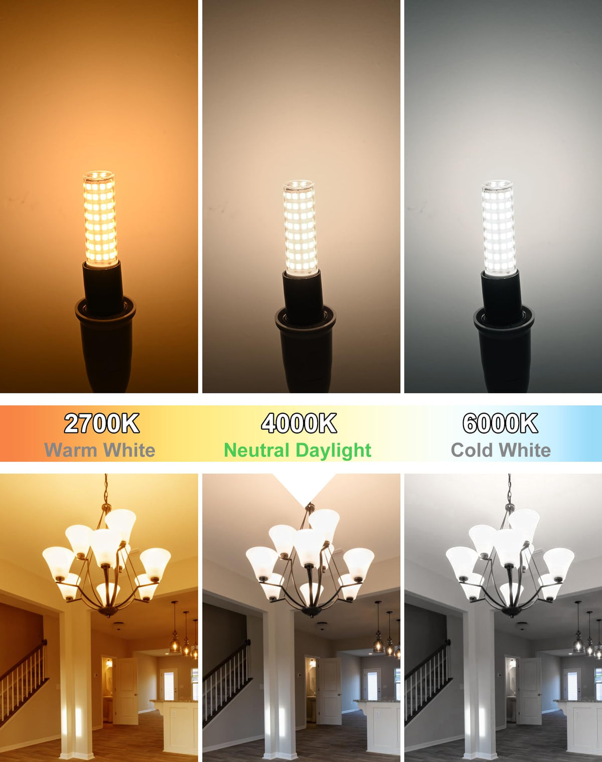 Bring Natural Daylight Indoors Experience The Benefits Of 4000K Natural Daylight With Our E12 Led Candelabra Bulbs. These 100W Equivalent Bulbs Emit 1200 Lumens Of Bright Clear Light That Mimics Natural Daylight Making Colors Appear True And Vibrant. Ideal For Kitchens Where Accurate Color Perception Is Important For Cooking Bathrooms For Getting Ready In The Morning And Home Offices To Reduce Eye Strain During Work. The Non-Dimmable Design Ensures Consistent Light Output Without Flickering Providing A Stable Lighting Environment. With A Standard E12 Candelabra Base They Easily Replace Traditional Incandescent Bulbs In Chandeliers Pendant Lights And Ceiling Fans. Each Bulb Is Built To Last With A 25 000-Hour Lifespan Saving You Time And Money On Frequent Replacements. The 6-Pack Offers Great Value For Upgrading Multiple Light Fixtures In Your Home. Illuminate Your Space With The Natural Brightness Of Our 4000K E12 Led Bulbs