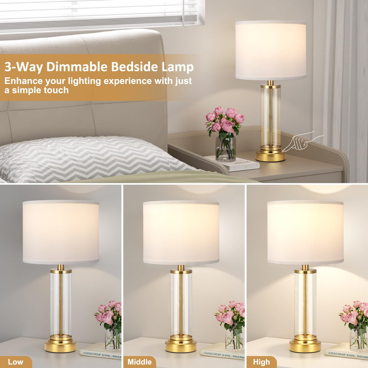 Q: What are the benefits of using touch control lamps?A: Touch control lamps, like our Gold Bedroom Lamps Set of 2, offer convenience and ease of use. With just a gentle touch, you can switch between three brightness levels—Low, Medium, and High—making it ideal for creating the perfect ambiance without fumbling for a switch in the dark.