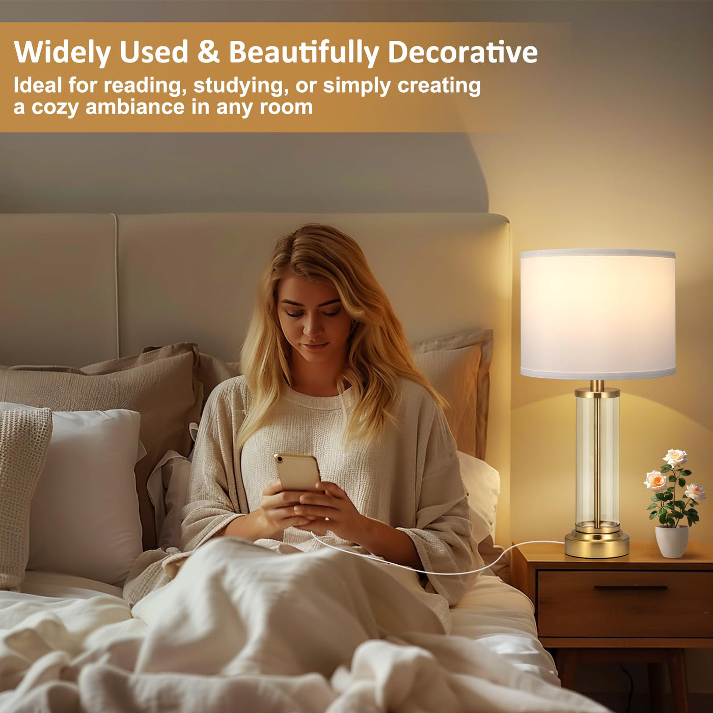 Q: What type of bulbs are included with the lamps?A: The Gold Bedroom Lamps Set of 2 comes with two E26 LED bulbs specifically selected to complement the lamps' design. These bulbs are energy-efficient and compatible with the 3-way dimmable feature, providing you with the perfect lighting for any occasion.