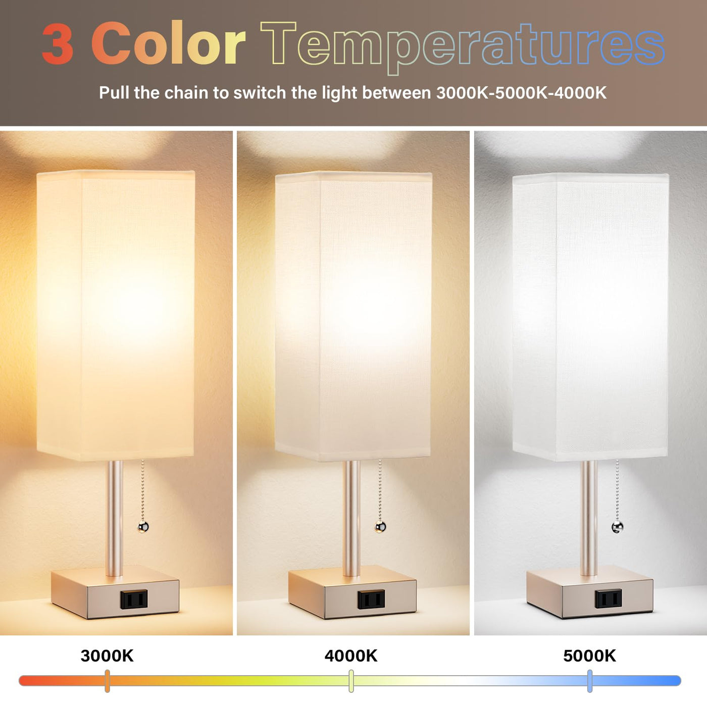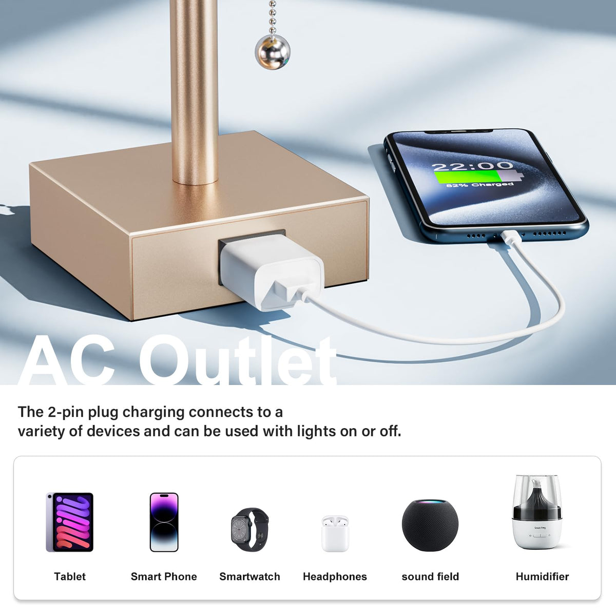 Q: Does the bedside lamp have a charging port?A: Yes, the bedside lamp features a built-in AC outlet that allows you to charge your electronic devices conveniently, whether the lamp is on or off. This is perfect for keeping your smartphone or tablet powered up while you relax.