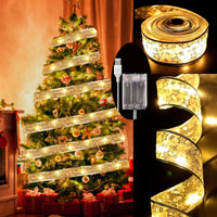 Q: How do you power the Gold Christmas Tree Ribbon Lights?A: The lights can be powered using a USB connection or 3 AA batteries (not included), providing flexible options for installation and use without needing a nearby socket.