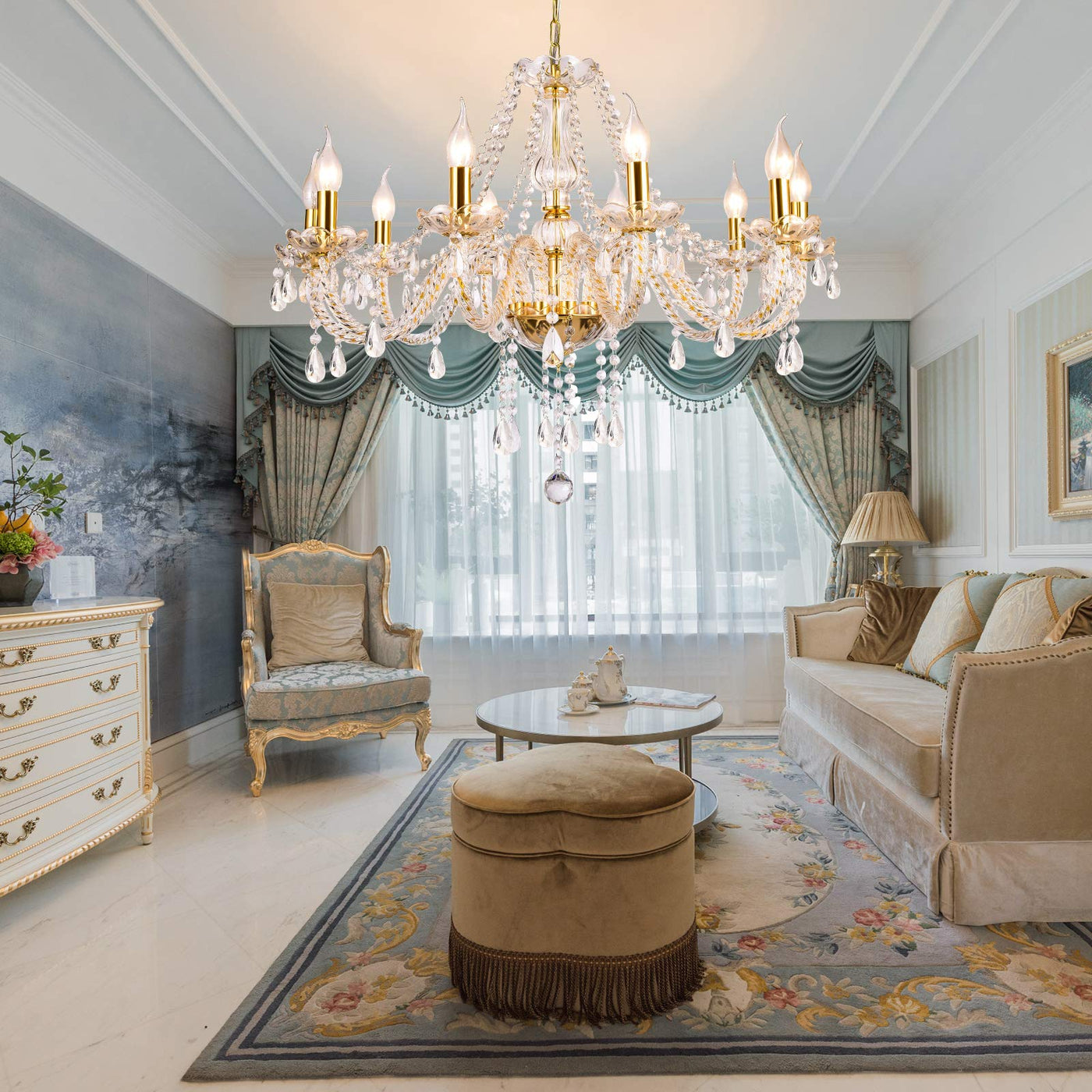 10 Bulbs Required: K9 crystal chandeliers body with lots of sparkle.Much more luxurious and elegant. Please refer to the pictures for the real color without lighting up. Different lights show different effects.(TIP:Without Bulbs) | Amazing design:K9 Crystal modern Rain Drop Chandelier Lighting is a gorgeous ceiling light fixture which is far more stunning than the picture. Solidly built with superior quality materials -- first-class crystal class raindrop & brightly stainless steel, the mode | Applicable Scenarios: Classic European crystal light and candle shape, nice light decors for for home living room,hall,corridor,balcony,entrance. | Easy to install: Crystal chandeliers Need assembly by the customer includes the wiring,professional installation is recommended.(There is an installation website in the manual, which can be used as your reference)please feel free to contact us if you need help. | Product size: (10 crystal lamps inch Size(fx H): 31.6 inx 23.7 in)Chain/cord length: 11.8 inch . Chain/cord: Adjustable.
