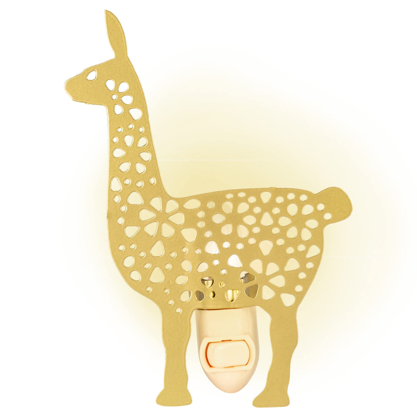 Q: What material is the llama night light made from?A: This night light is made from quality metal with an acrylic base, featuring a beautiful gold finish that adds a touch of charm to your decor.