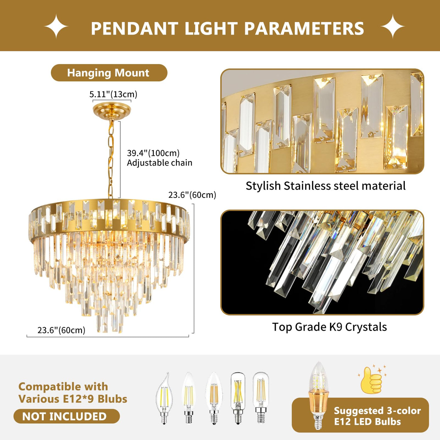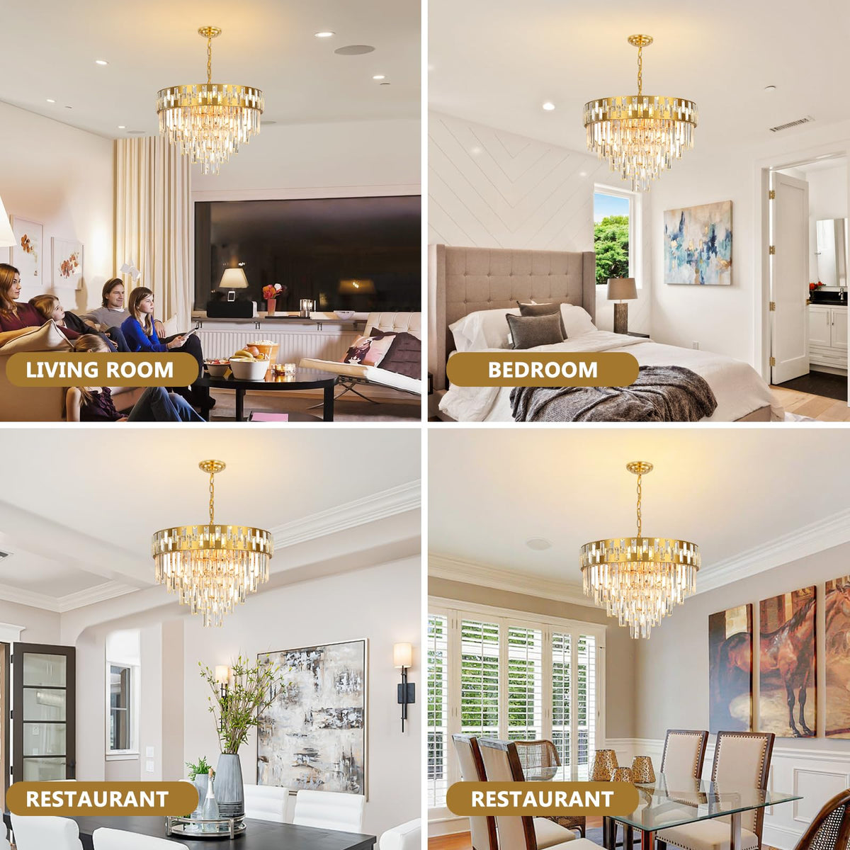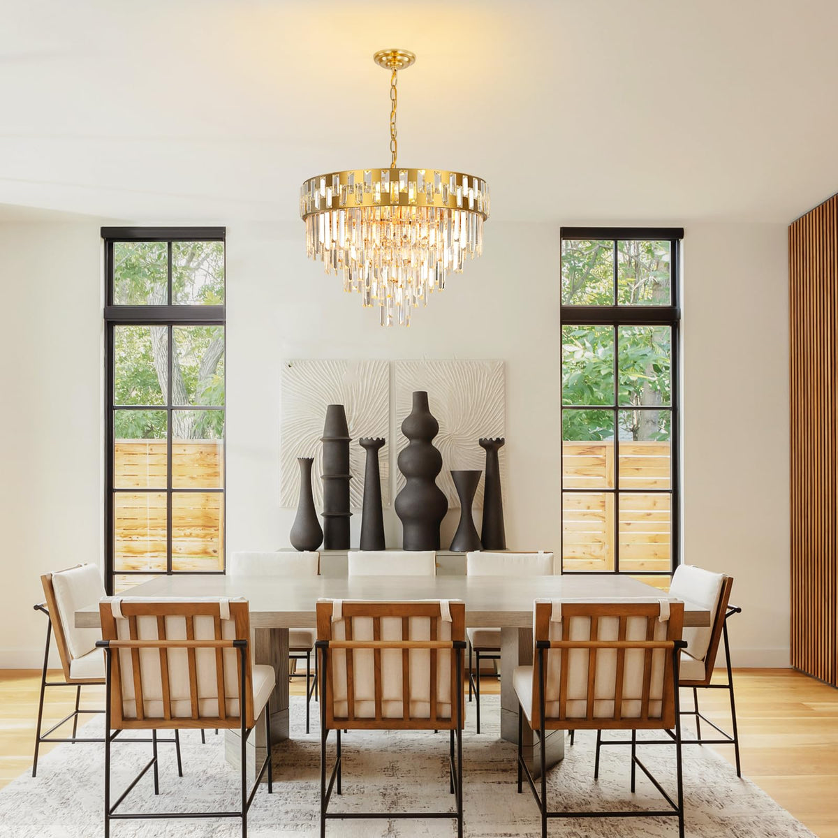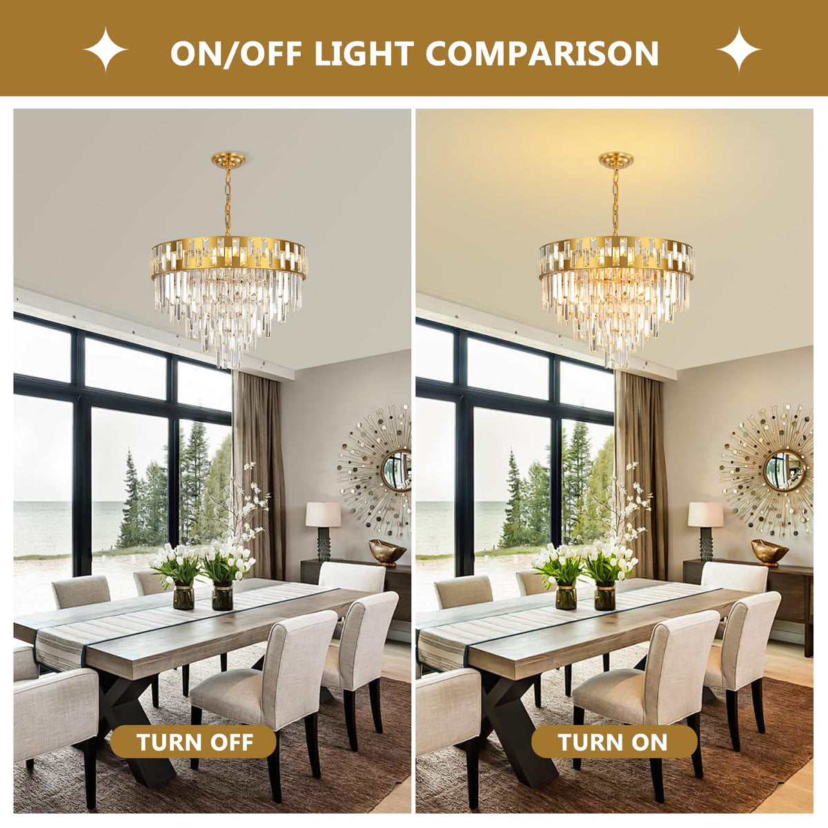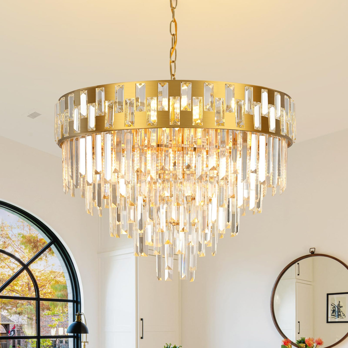 Gold Crystal Chandeliers Modern Crystal Chandelier 5-Tier Dining Room Chandelier Round Large Contemporary Crystal Pendant Hangin