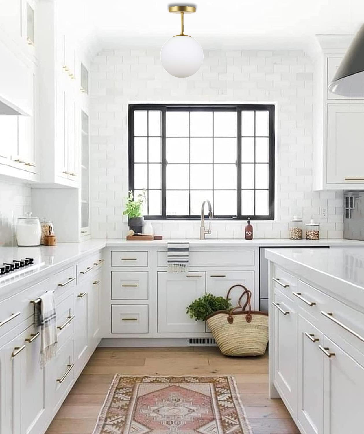Q: What materials are used in the construction of this light fixture?A: The Gold Globe Semi Flush Mount Ceiling Light features a combination of metal and frosted glass. The frosted glass shade provides a soft light diffusion, while the metal finish adds a modern touch.