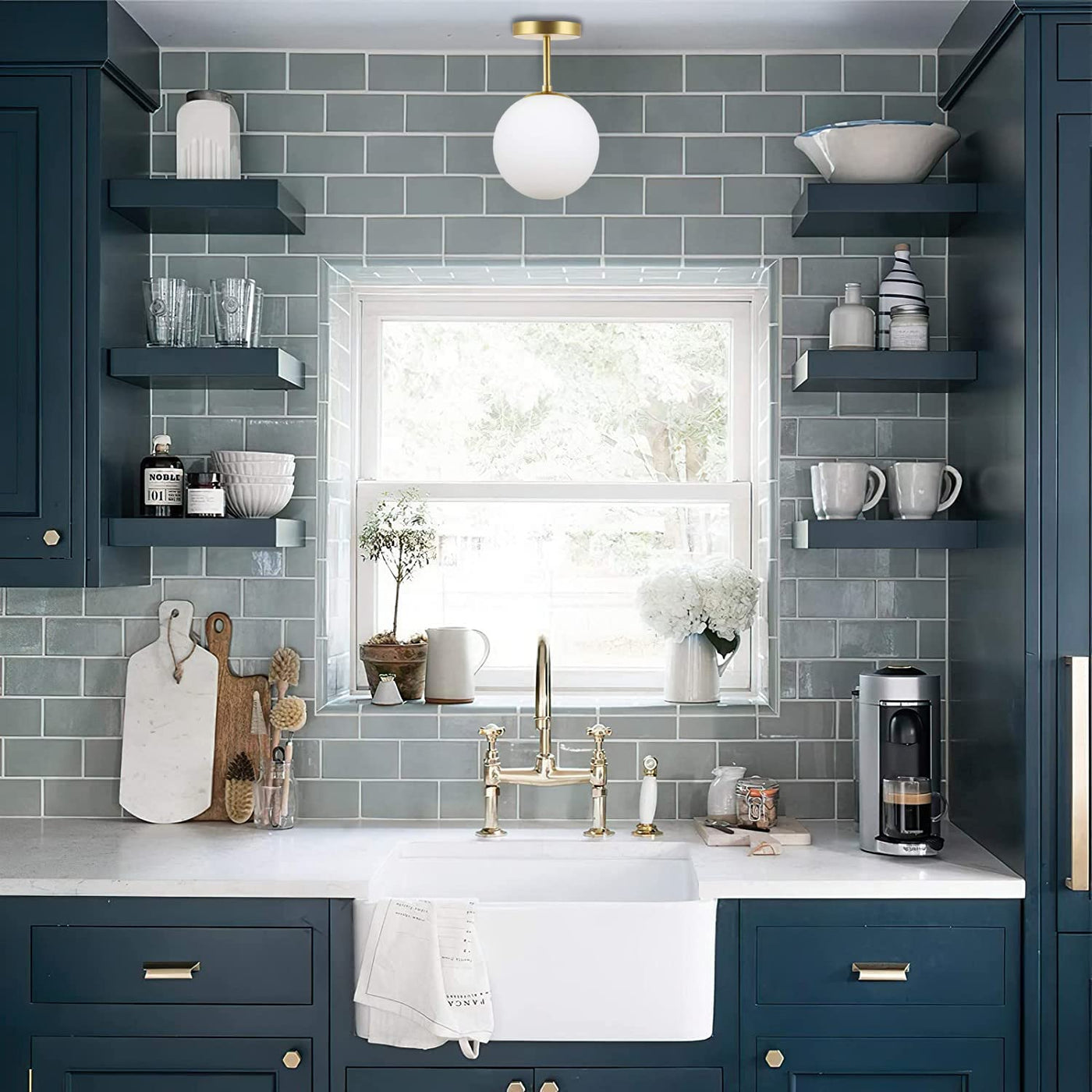 Gold Globe Semi Flush Mount Ceiling Light,Mid Century Modern Light Fixture Ceiling,Globe Ceiling Light For Hallway Living Room Kitchen Bedroom Storage Schoolhouse Laundry(Bulb Incl.)