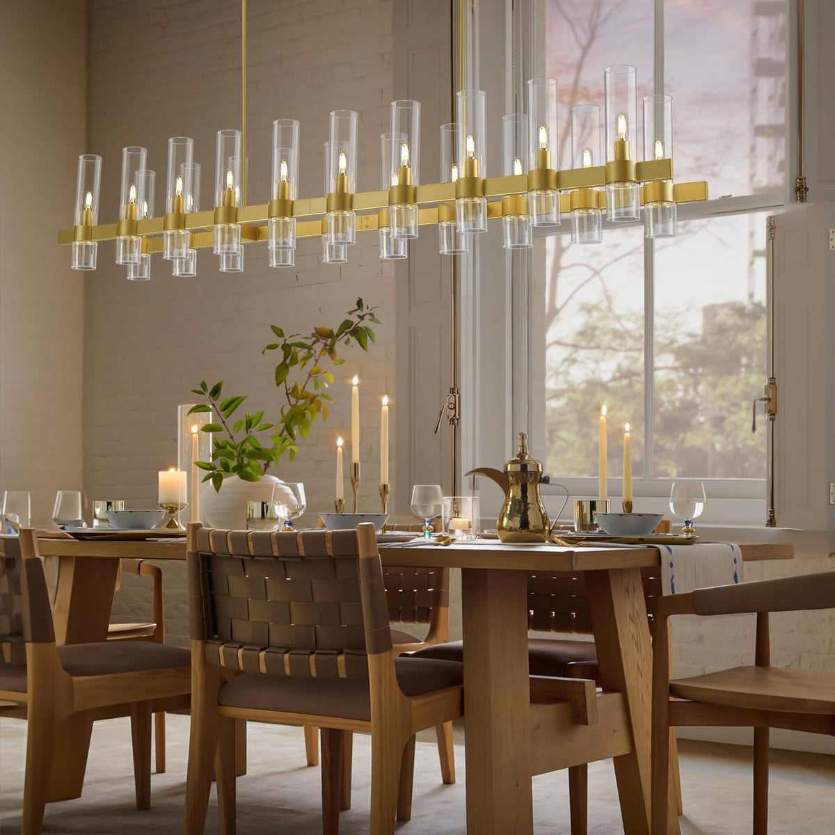 Gold Linear Chandeliers For Dining Room, 68'' Rectangle Chandelier With Glass, 20-Light Dining Room Chandeliers Over Table, Bras