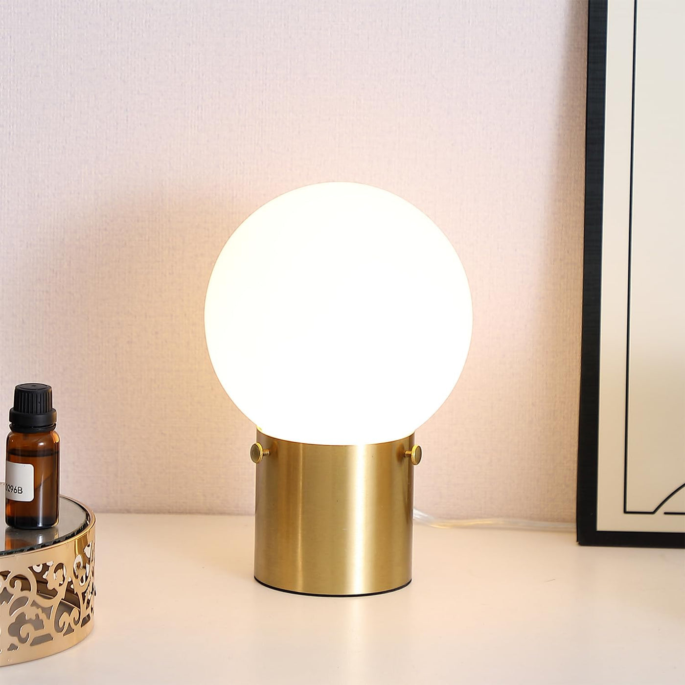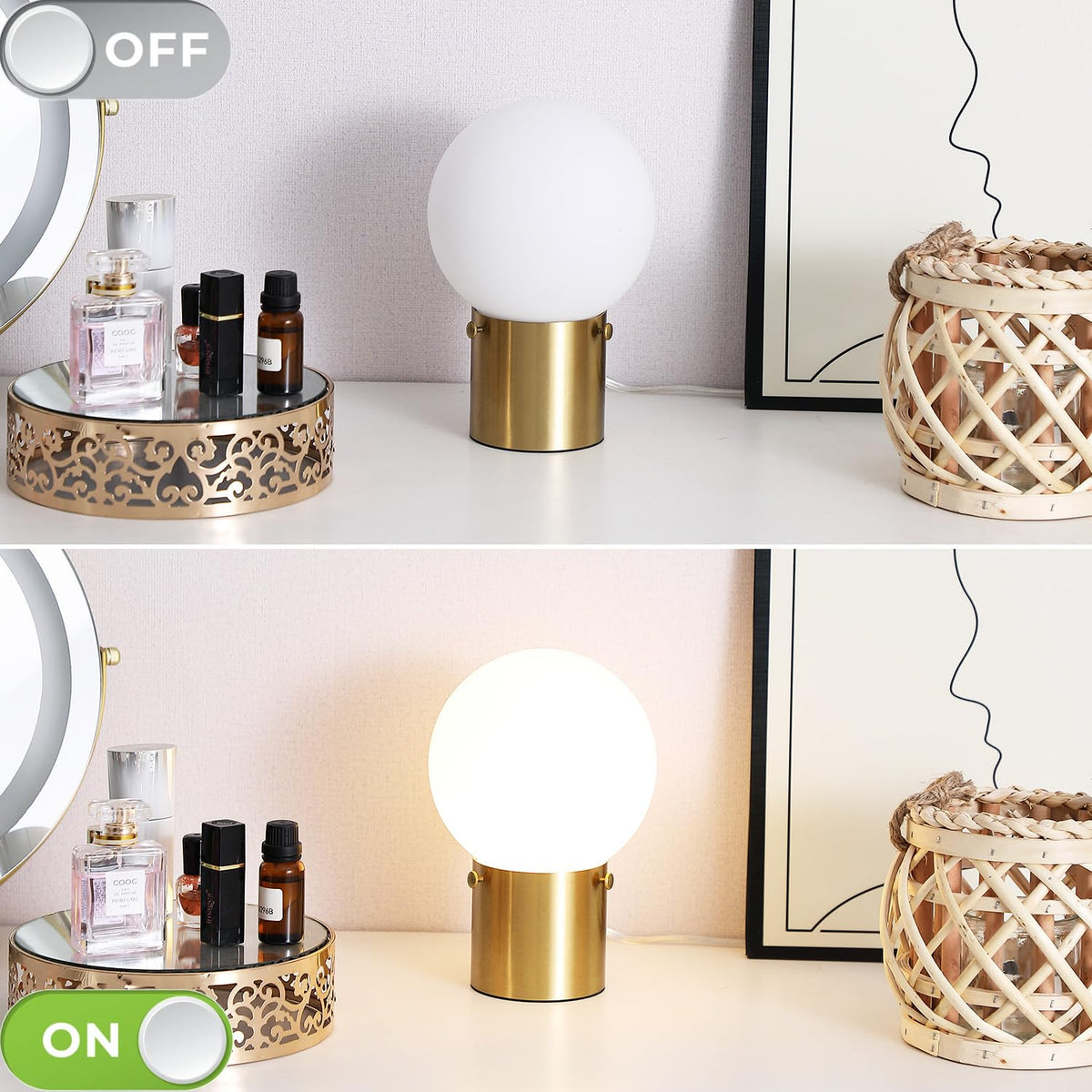 Gold Table Lamp For Nightstand With Frosted Glass Globe Lamp Shade, Mid Century Modern Bedside Lamp With Gold Metal Base, Small Nightstand Lamp Side Table Lamp For Bedroom Living Room Entryway