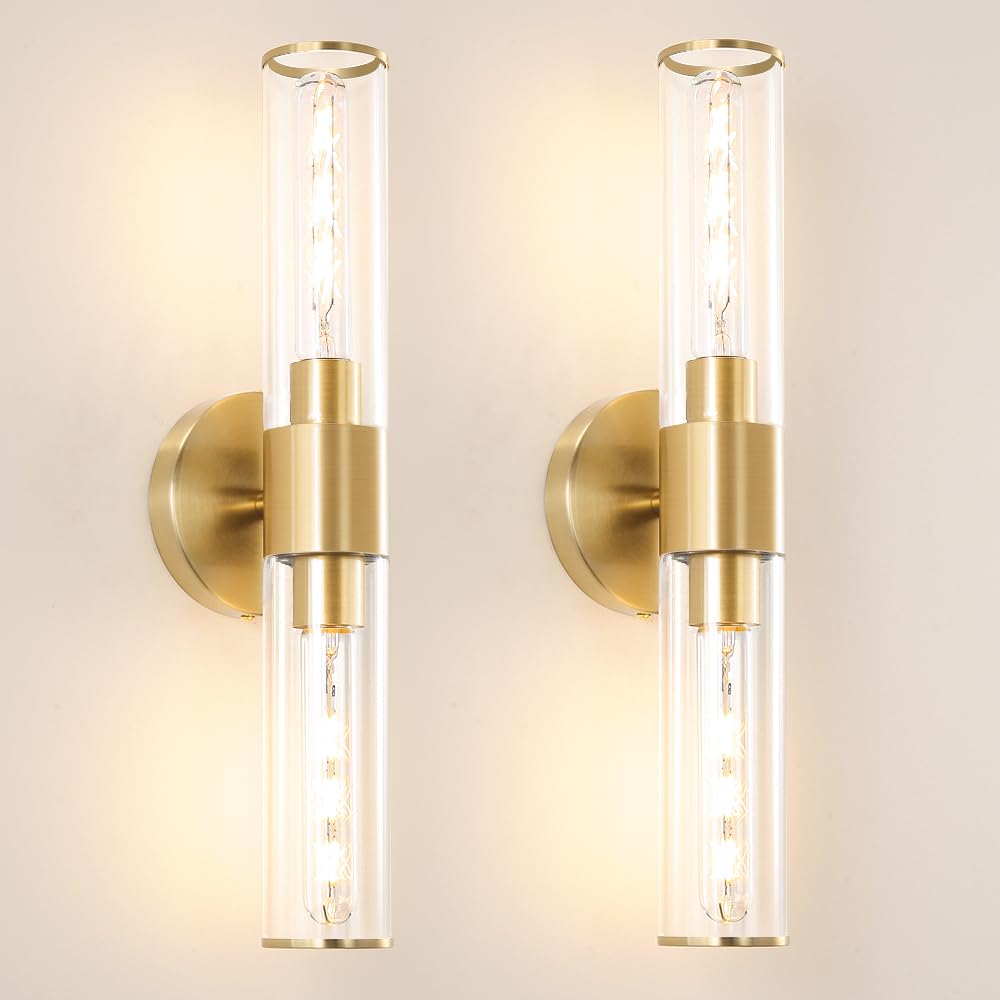 Gold Wall Sconces Set Of 2, Hardwired Bathroom Vanity Light Fixture, Brass Sconce Wall Lighting, Modern Wall Light Set Of Two, C