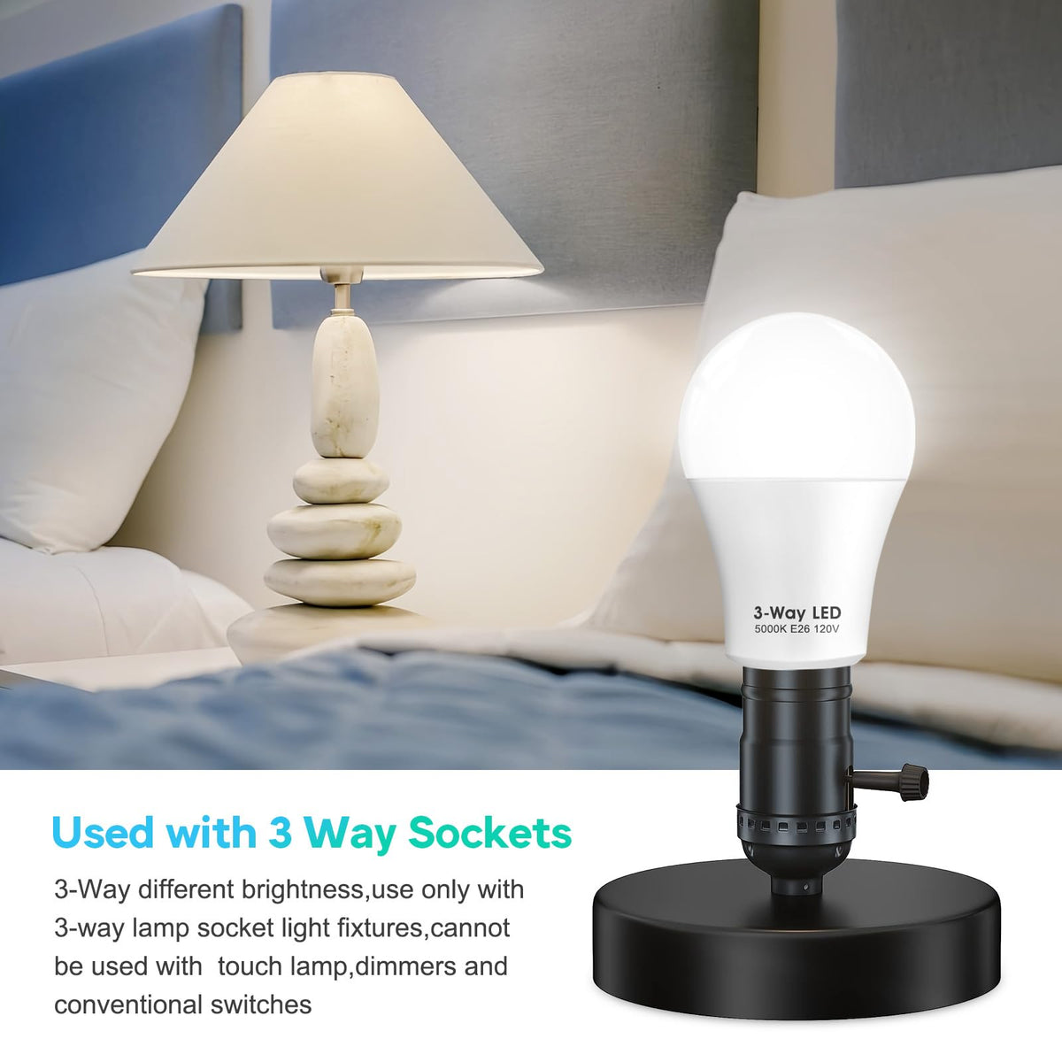 Gonhom 3 Way Led Light Bulbs 50 100 150W Equivalent, Daylight White 5000K 3 Way Light Bulbs, A19 Three Way Light Bulbs,E26 Base 3-Way Light Bulbs For Reading,Living Room-4 Pack