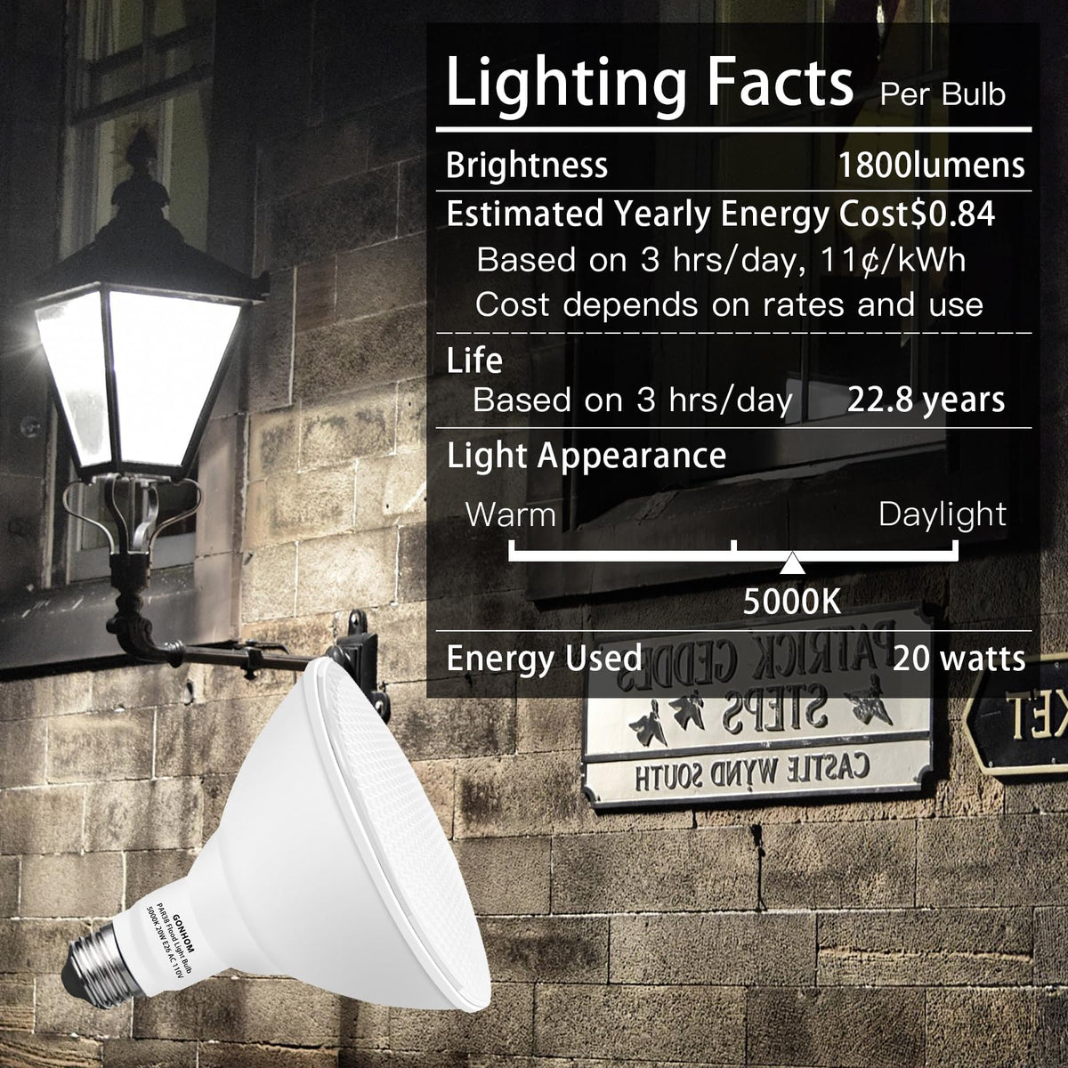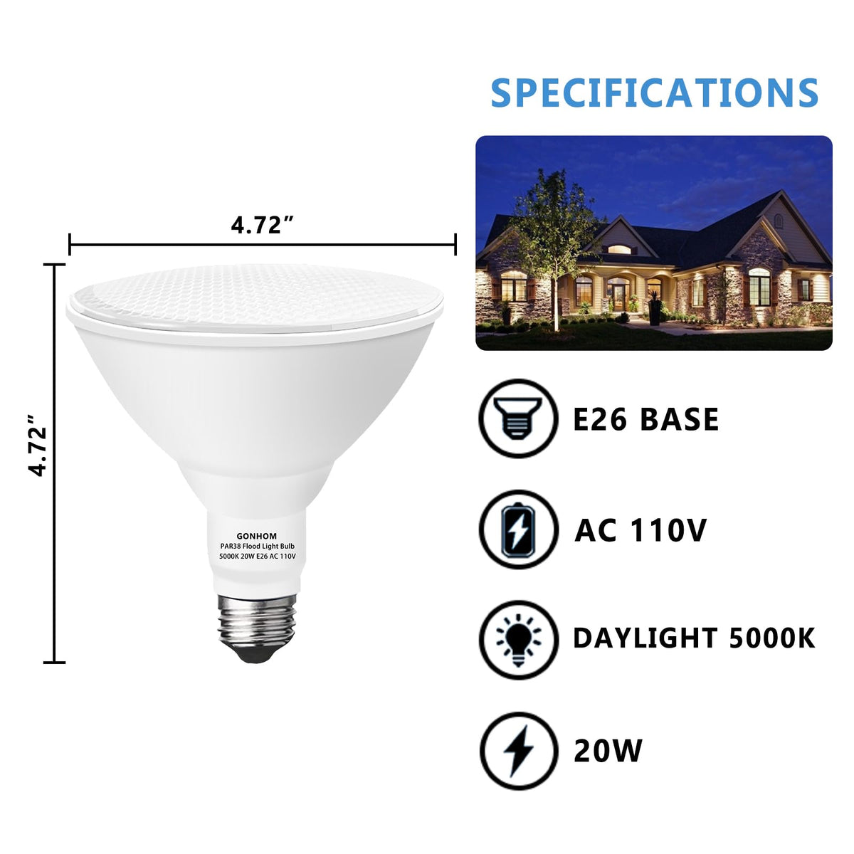 Gonhom Par38 Led Dusk To Dawn Flood Light Bulbs Outdoor 2 Pack, 5000K Daylight, 20W Replace Up To 200W, 1800Lm, E26 Base Outdoor