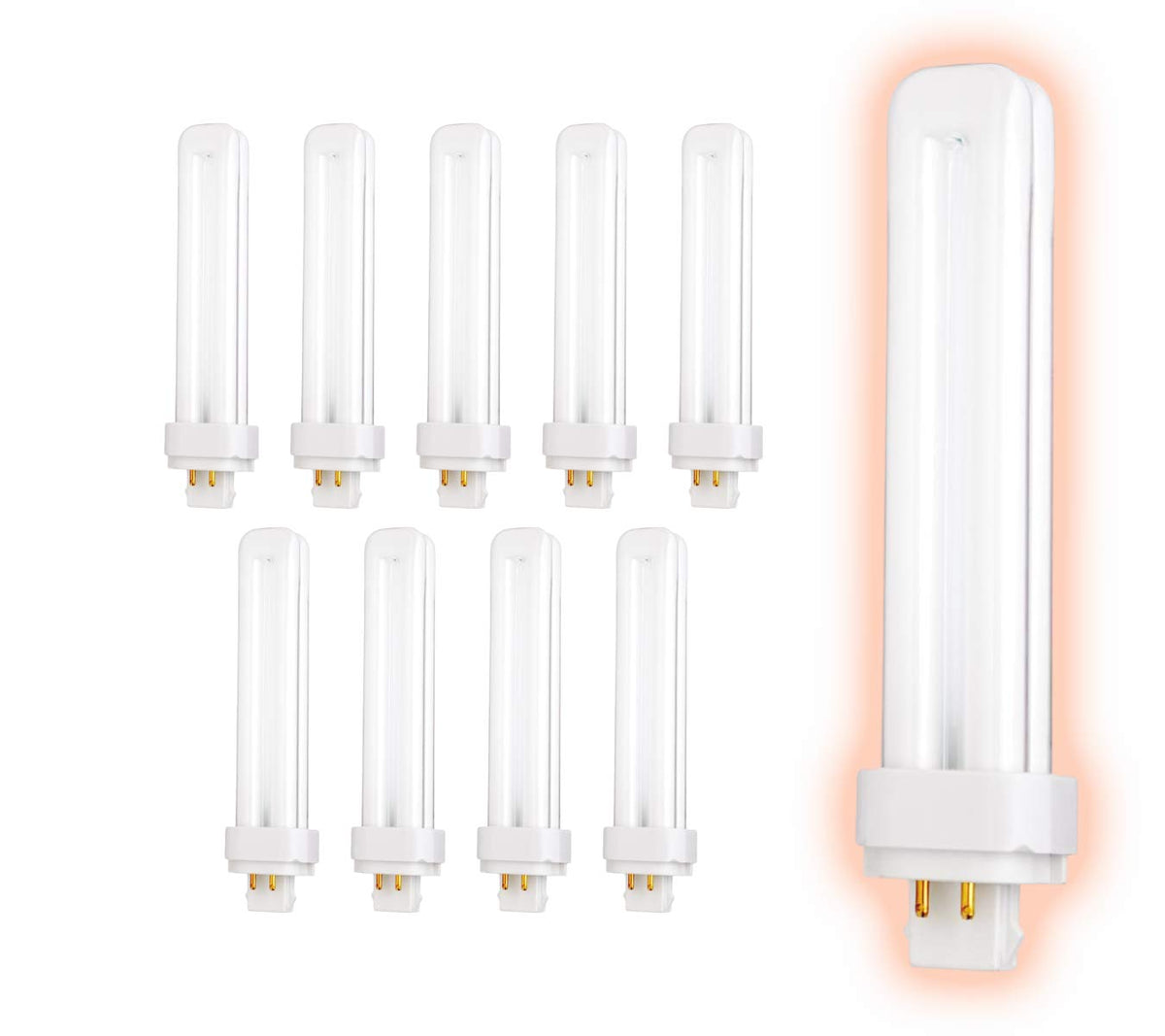 STANDARD 4-PIN PLUG-IN: These bulbs have a G24Q-3 4 pin plug in base that make the installation effortless. Simply install the bulb directly into a compatible base accessory or socket. Our bulbs are the smart choice for replacements of canister light bulbs, wall sconces, chandeliers and other compatible fixtures in your business. | COMPACT LIGHTING: The bulb temperature of GoodBulb’s CFL lights give off a Full Spectrum color that makes these bulbs perfect for any common area or work space. Our compact fluorescent bulbs emit a pure white light that is able to easily brighten your office space, lobby, hotel, commercial retail space, or any business. | ECO LIGHT BULBS: Goodbulb’s Compact Fluorescent Lights utilize only 26 watts of energy while producing 1800 Lumens. These long-lasting lightbulbs and were made as a replacement for similar incandescent bulbs making them perfect energy saver light bulbs. Save up to 70% in energy costs compared to similar light output incandescent lamps. | 12,000 HOURS: GoodBulb's 26 watt CFL plug-in bulb is rated for an average of 12,000 life hours. These long lasting, long life bulbs will last almost 7 years when they are used 5 hours per day. Reduce time and money spent on replacing bulbs in your high ceiling fixtures by making the switch to GoodBulb today. | GOOD CAUSES: Buy Light. Give Light. One in every seven people in the world live without electricity. A portion of every GoodBulb purchase is used to provide solar powered LED lanterns to families living without electricity. Selecting GoodBulb is a decision to be a light in the darkness. Together, we can make a difference!