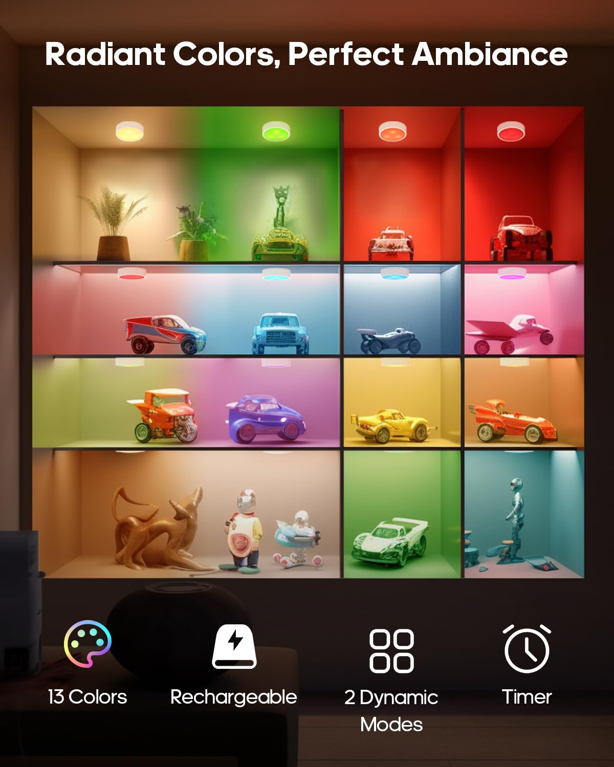 Goodea.Fun Puck Lights With Remote, 13 Rgb Colors Led Under Cabinet Lights, Rechargeable Baterry Operated Under Cabinet Lighting
