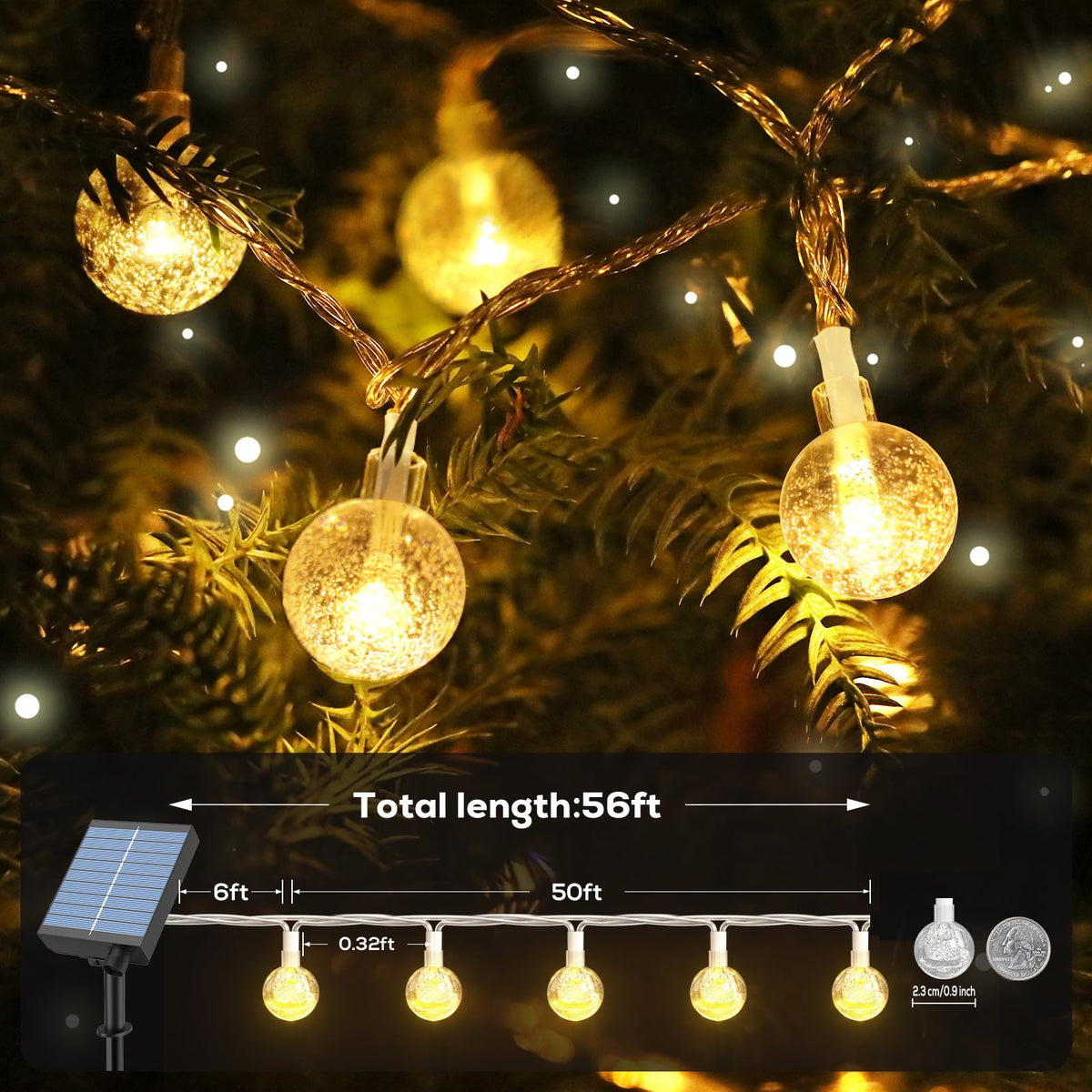 Goodea.Fun Solar String Lights, 56Ft 100Led Solar Christmas Light Outdoor With Remote, Ip65 Waterproof, Solar Crystal Globe Patio Lights, 8 Light Modes, Timing, Christmas Decorations For Garden Yard