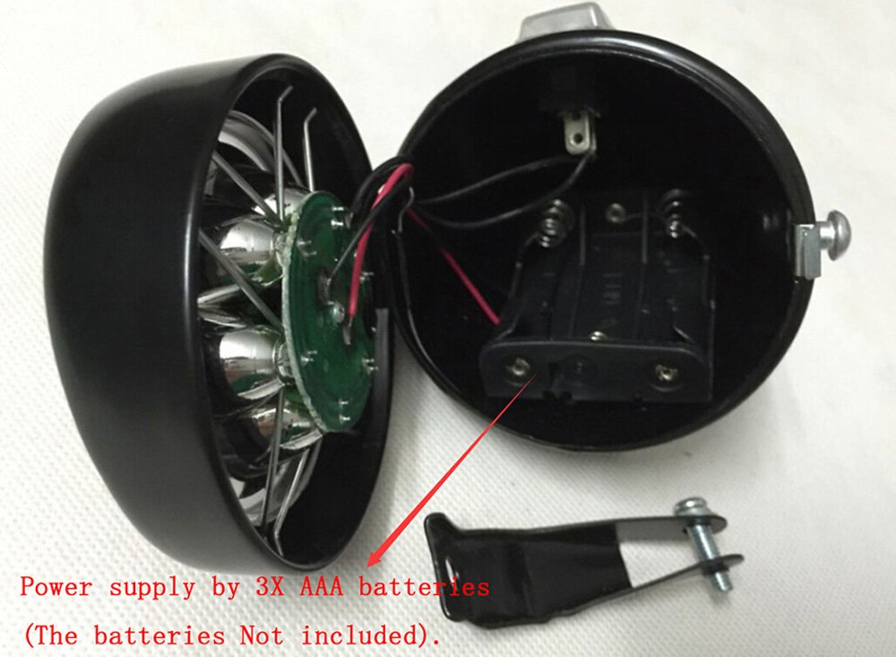 -- Product Description -- * The led light size diameter about 8cm, length about 11cm, power supply by 3x AAA batteries (the batteries not included). * Please carefully check the product description and picture, the pictures are taken in kind, including a light and a fixed bracket. * Please confirm whether your bicycle supports to install this light through this bracket.