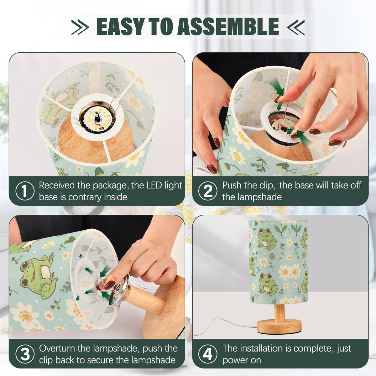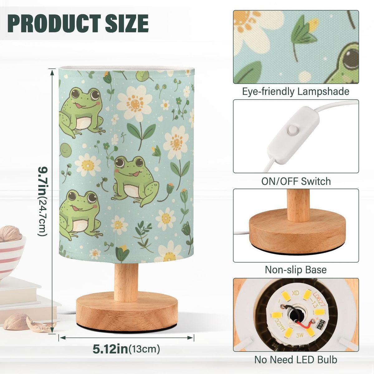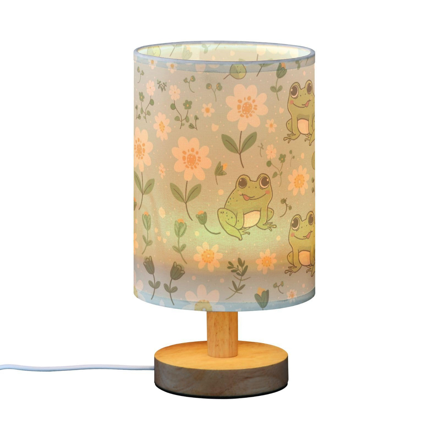 Goodold Cute Kawaii Frogs Led Table Lamp - Modern Minimalist Bedside Lamp With Round Flaxen Fabric Shade For Nightstand, Perfect
