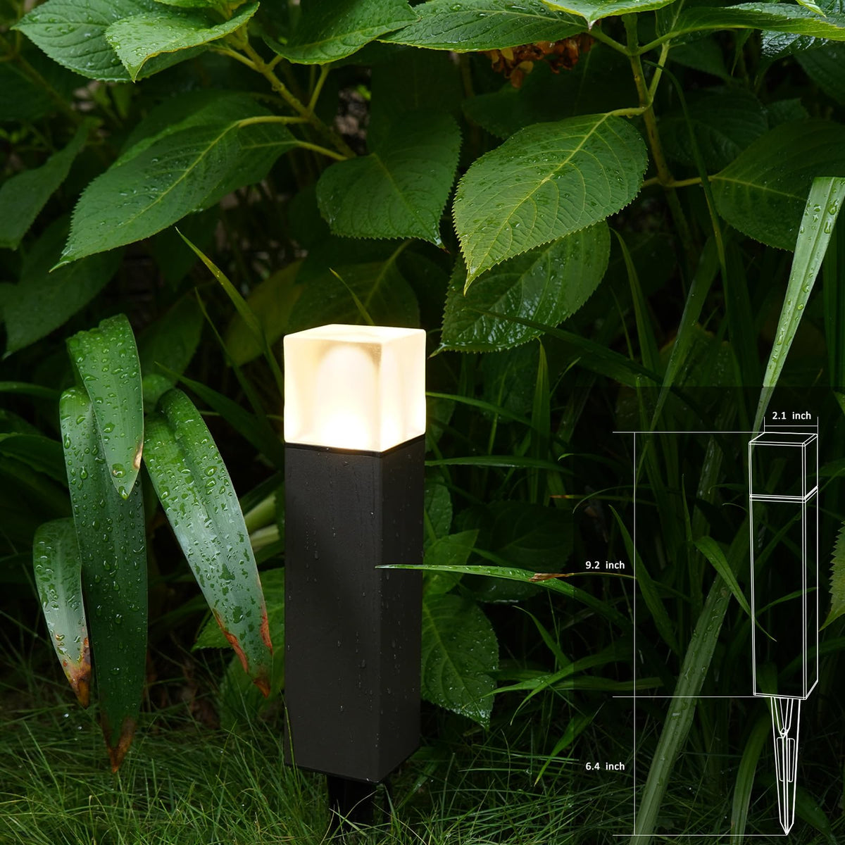 3. Metal stake and quick wire connector make the installation easy. Simple cuboid look, all cast aluminum construction, and this pathway light is durable, weather resistant.