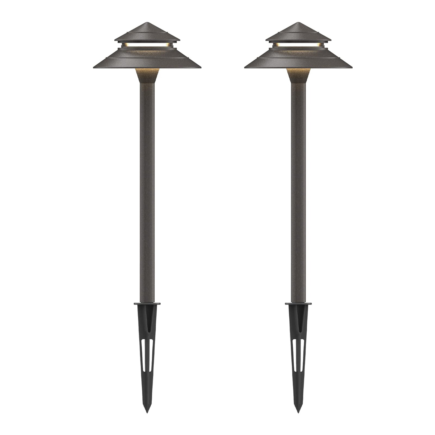 Goodsmann Pathway Lights 3W Led 2Pk Outdoor Low Voltage Landscape Lighting 180 Lumen Hardwired 2 Tier Pagoda Path Lights 3000K W