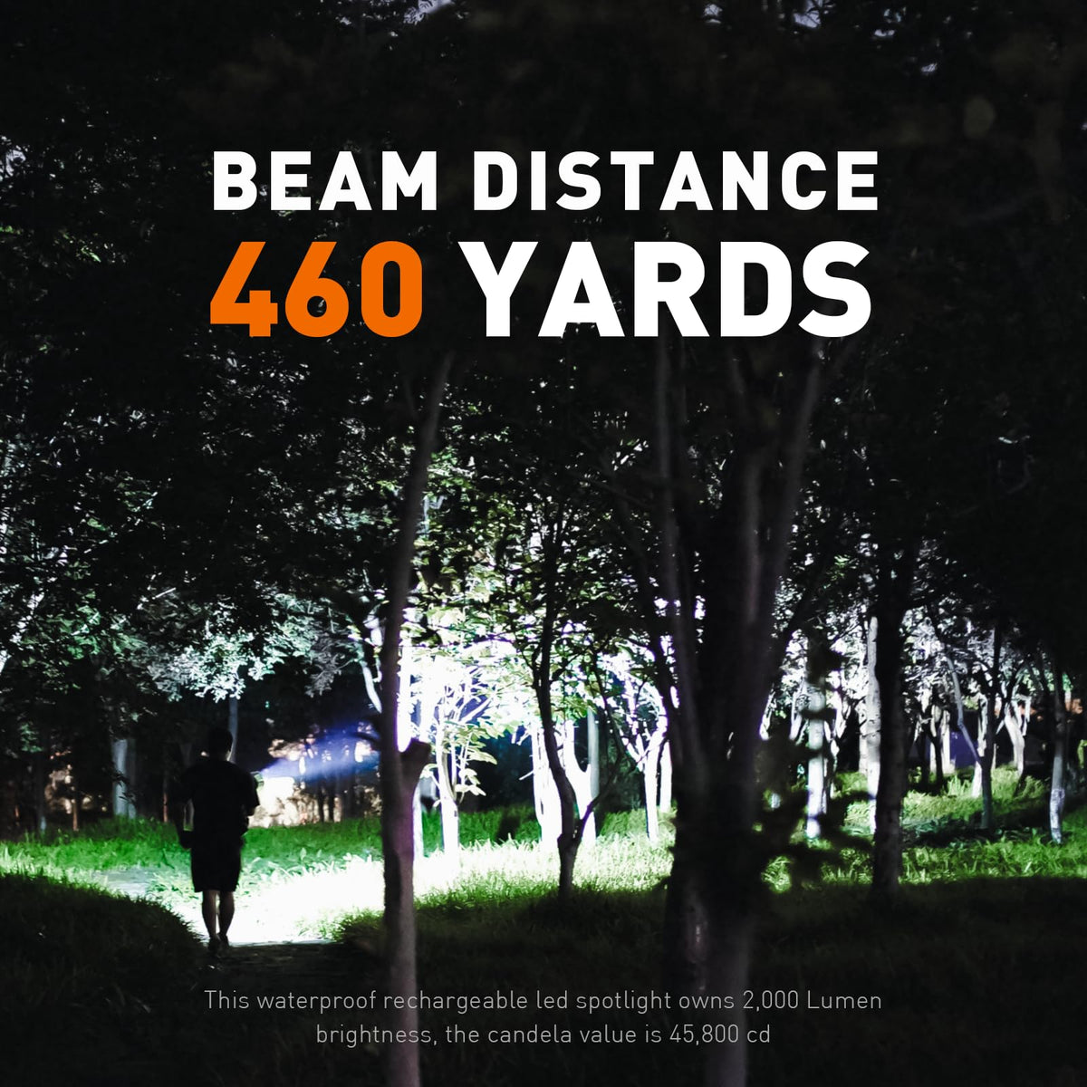 WHAT ELSE YOU SHOULD KNOW ABOUT THIS? There is a 7.4V 2600mAh battery inside this spotlight for supporting the spotlight working without any charger. Make you feel more convenient while using it.