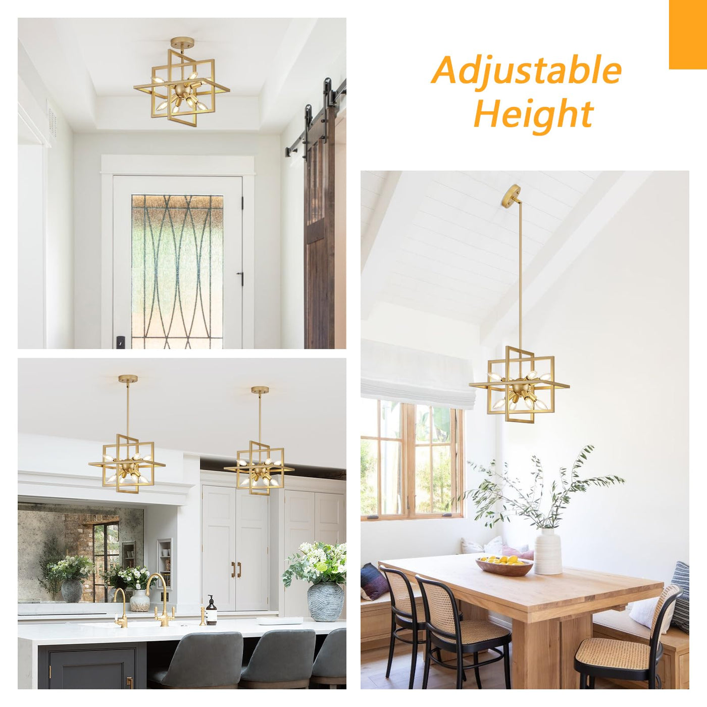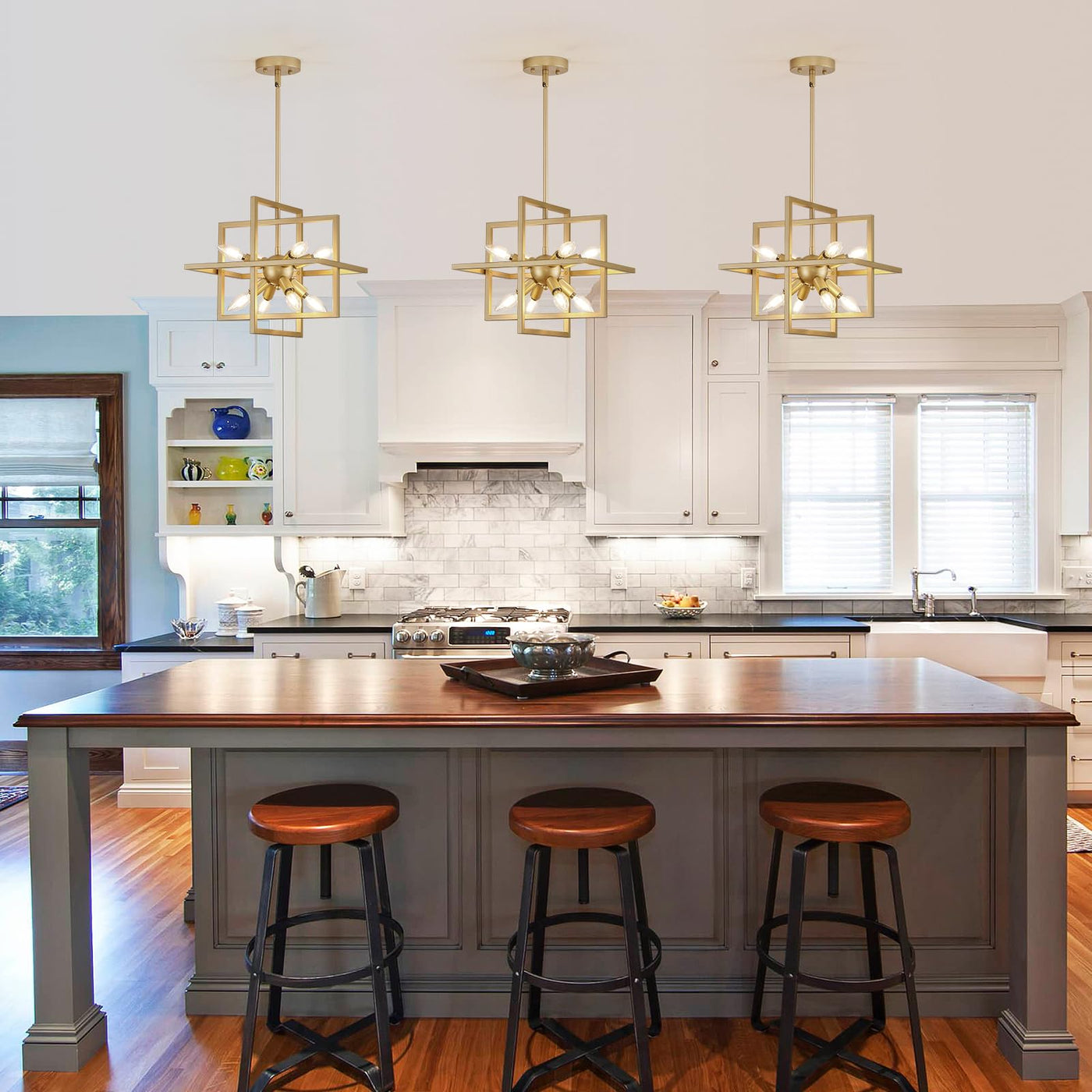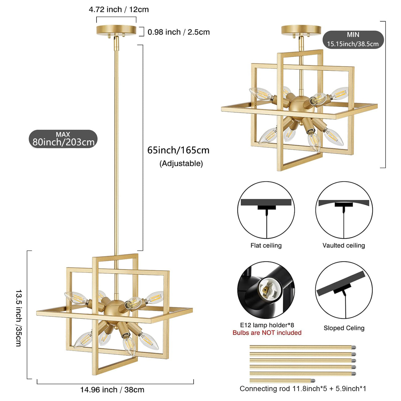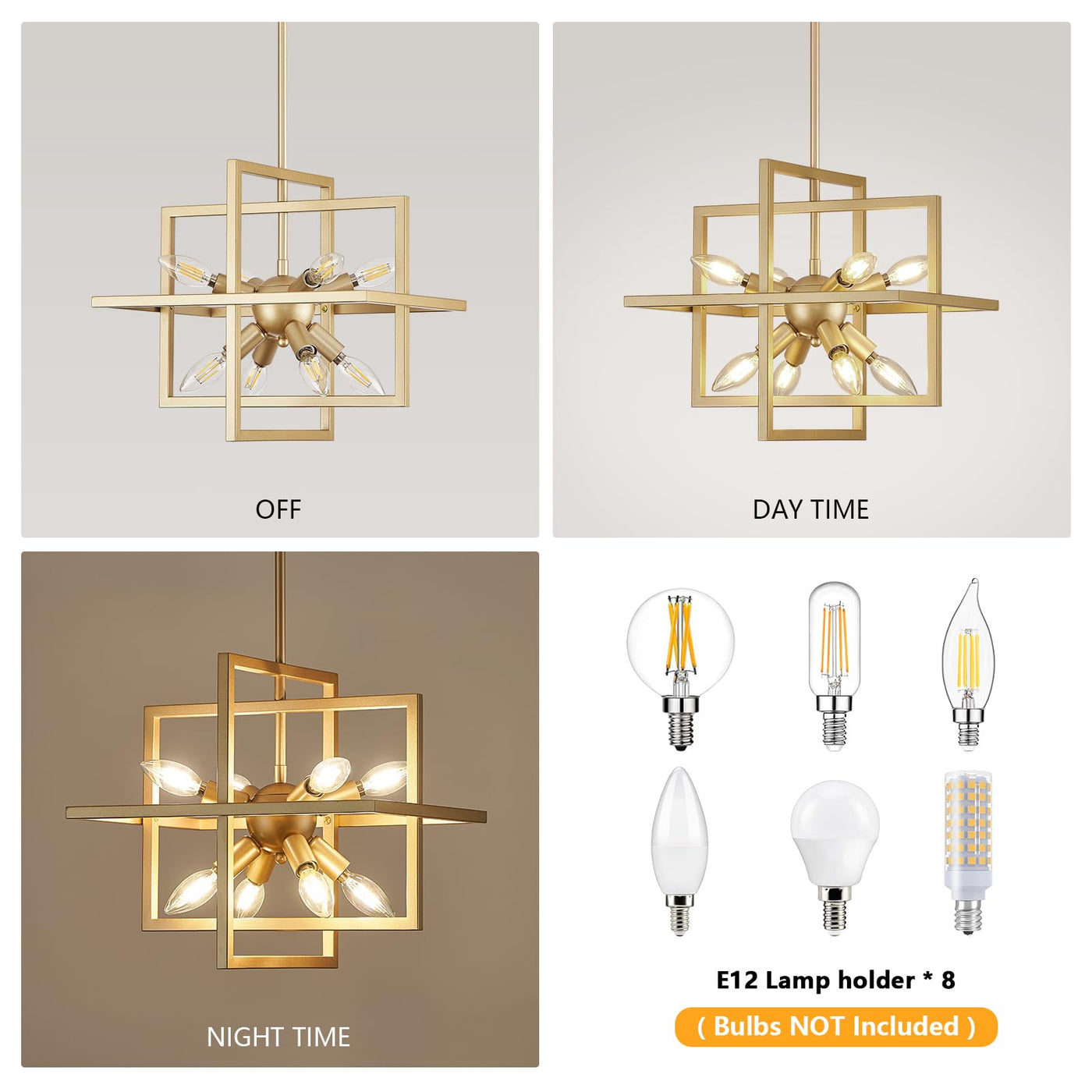 Goomavi Small Modern Lantern Chandeliers,Geometric Gold Pendant Light Fixture,8-Light Industrial Hanging Chandelier For Dining R