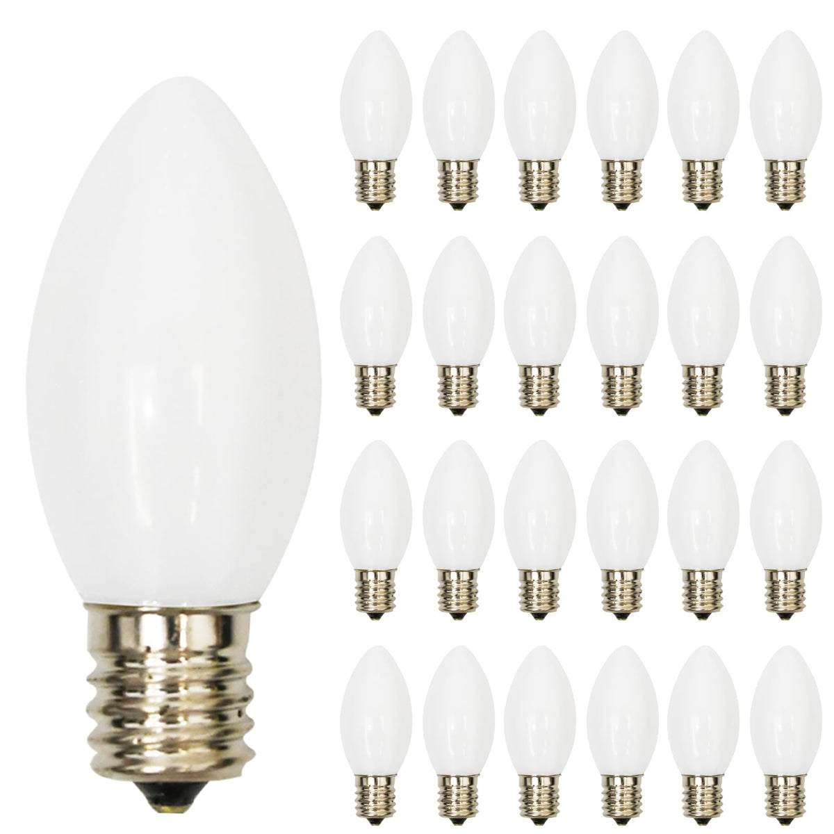 Goothy 25 Pack C9 White Replacement Light Bulbs For Christmas Outdoor Patio String Lights, 7 Watt Night Light Bulbs, E17/C9 Inte