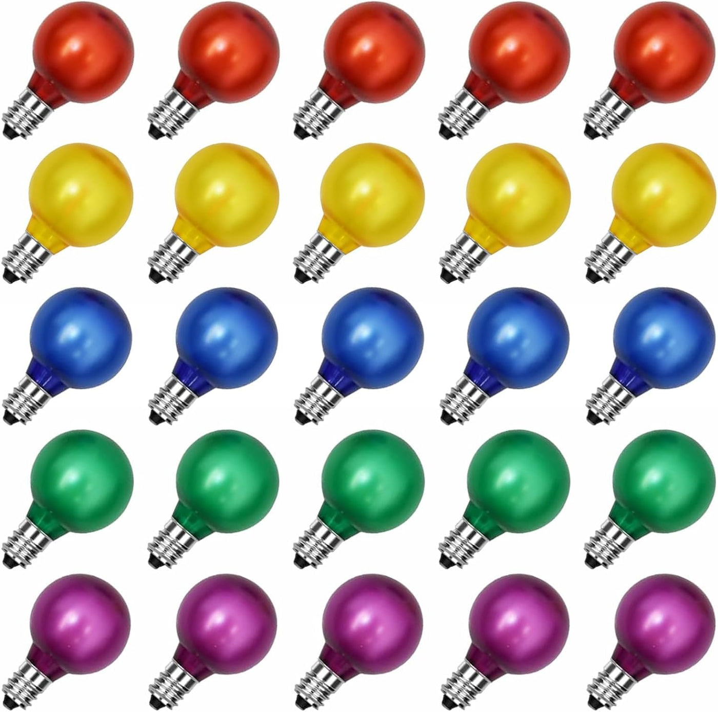 Goothy 25 Pack G40 Frosted Multicolor Led String Light Bulbs, E12/C7 Candelabra Base Christmas Globe Replacement Bulbs For Indoor Outdoor, 0.6W Shatterproof Led Night Light Bulbs