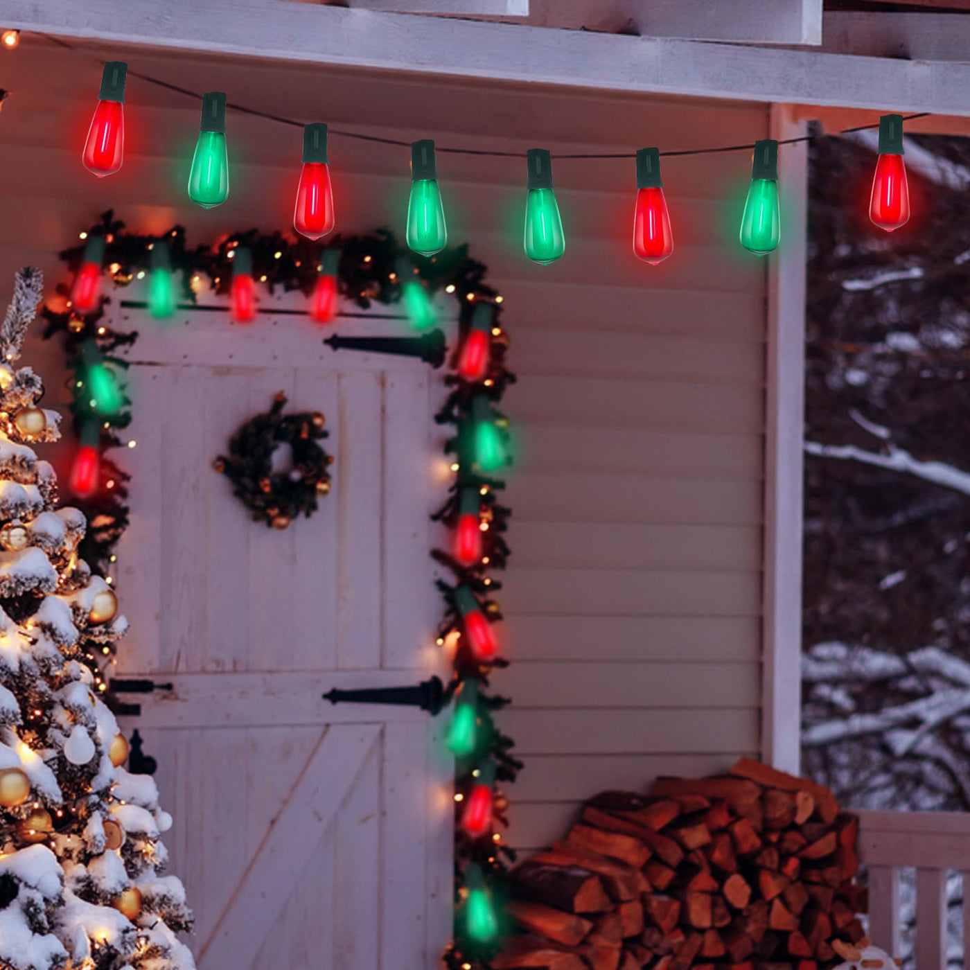 Q: How many bulbs are included in the string lights?A: The string lights include thirty LED bulbs, featuring a mix of red and green colors.