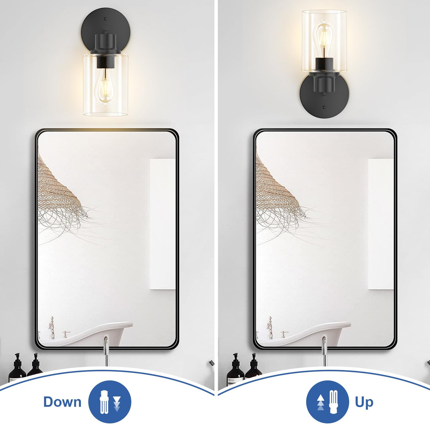 Gordnwe 1-Light Bathroom Wall Sconce, Matte Black Vanity Light, Modern Wall Light Fixture With Clear Glass Shade And E26 Bulb Ba