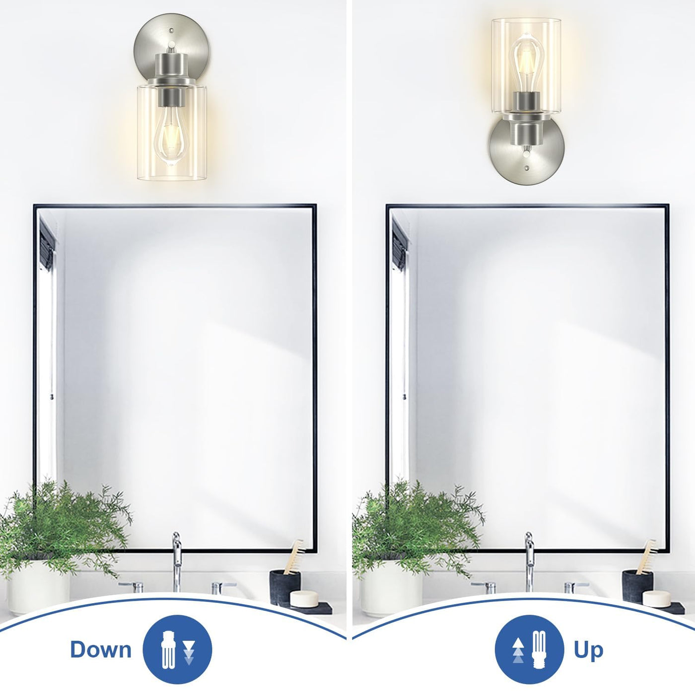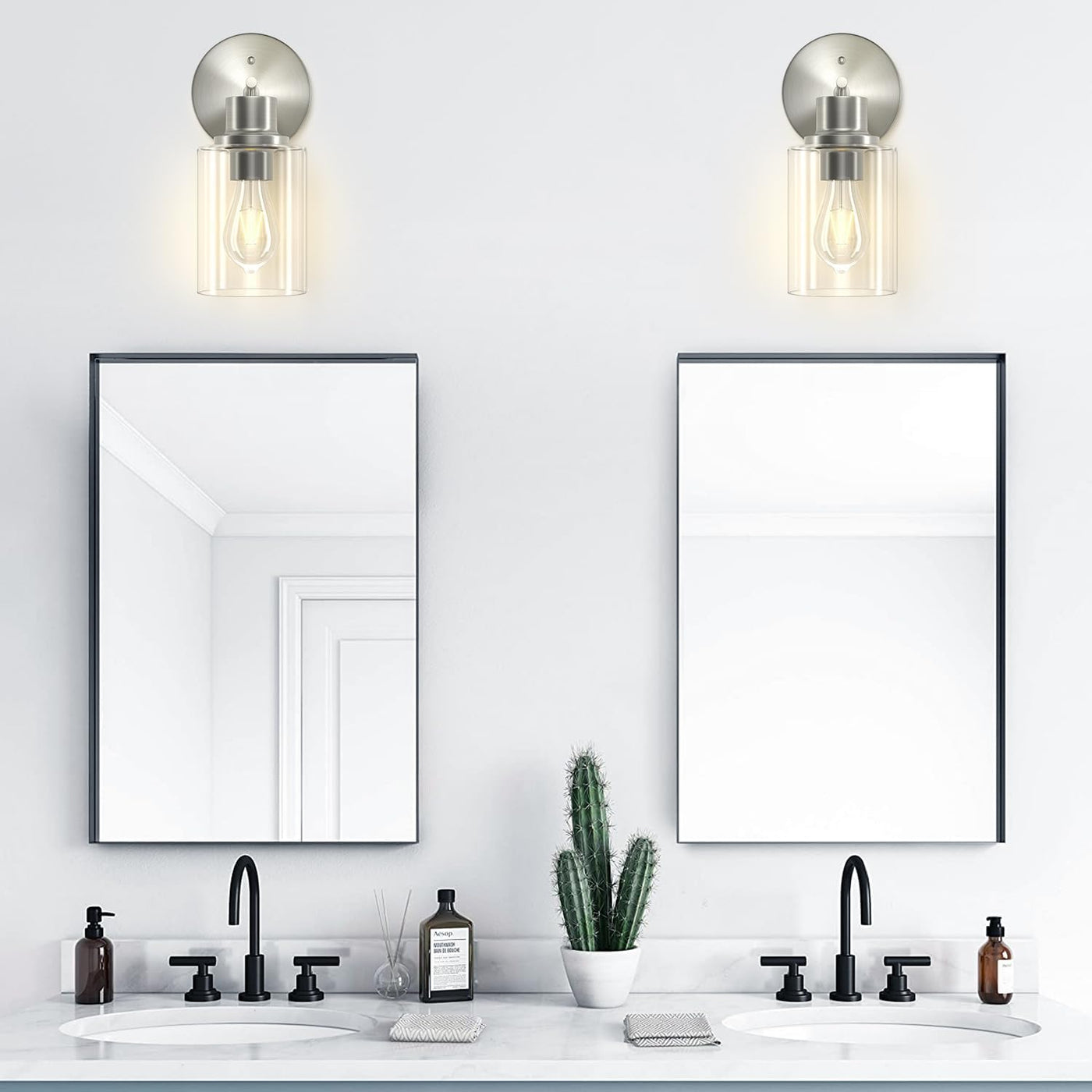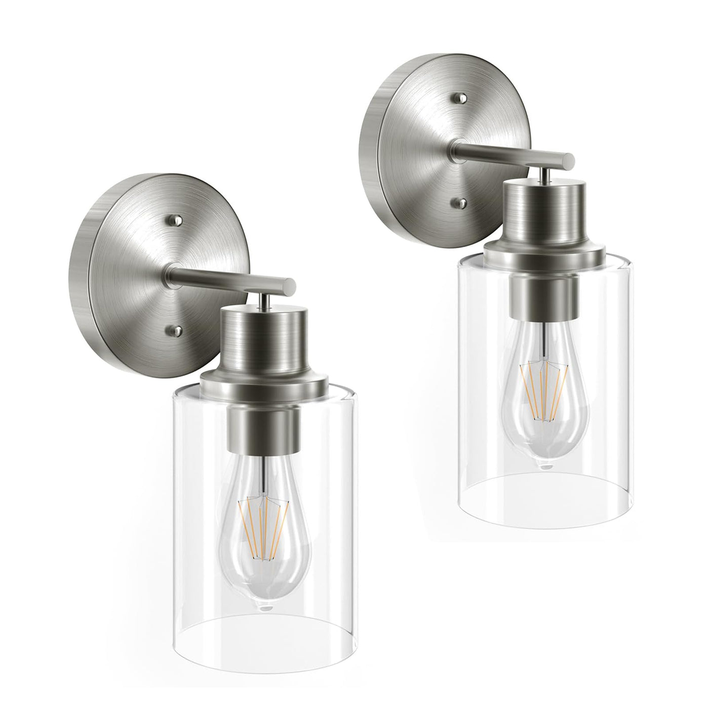 Gordnwe Set Of 2 Bathroom Wall Sconce, Brushed Nickel Vanity Light, Modern Wall Light Fixture With Clear Glass Shade And E26 Bul