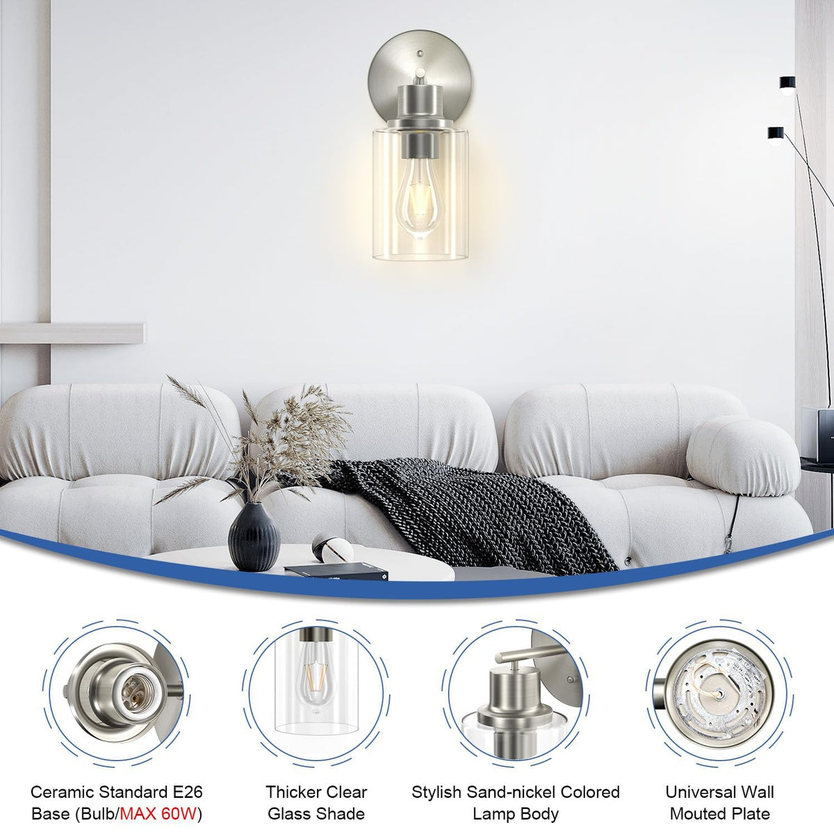 Exquisite Design: With its refined and contemporary look, the gorgeous wall light perfectly matches for any style of houses, no matter your house is modern or rustic style. The brightness it brings adds sparkle to your residence when you turn it on.