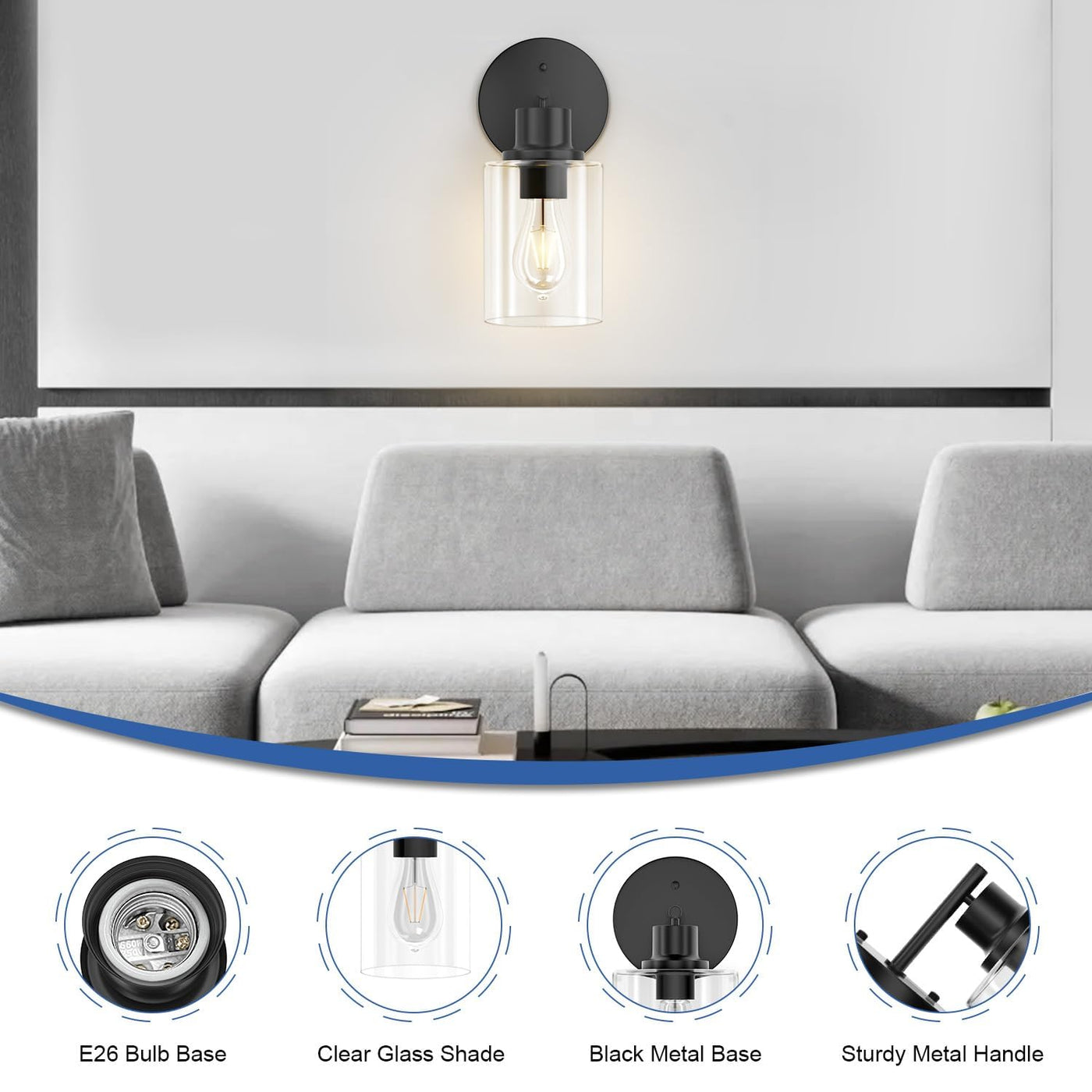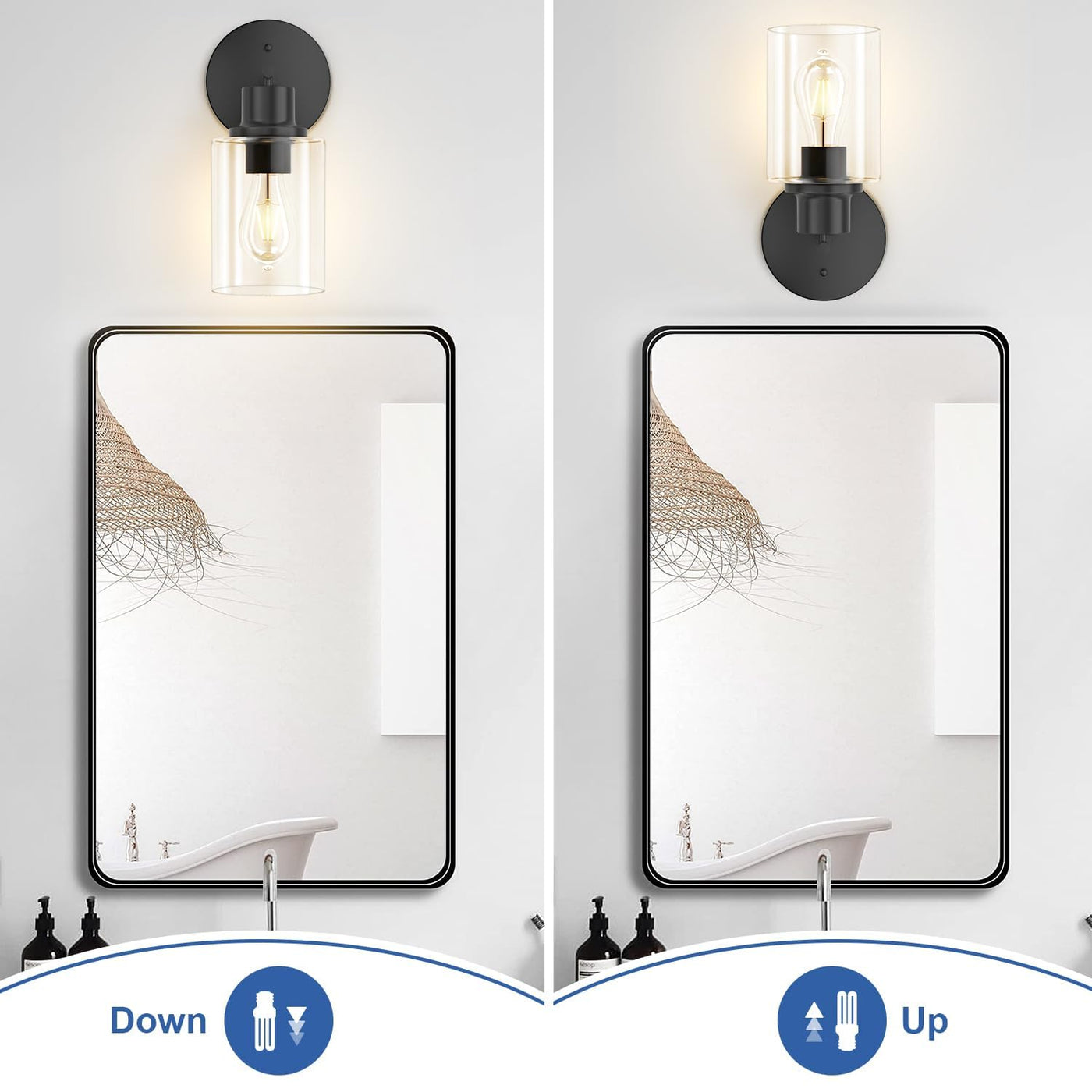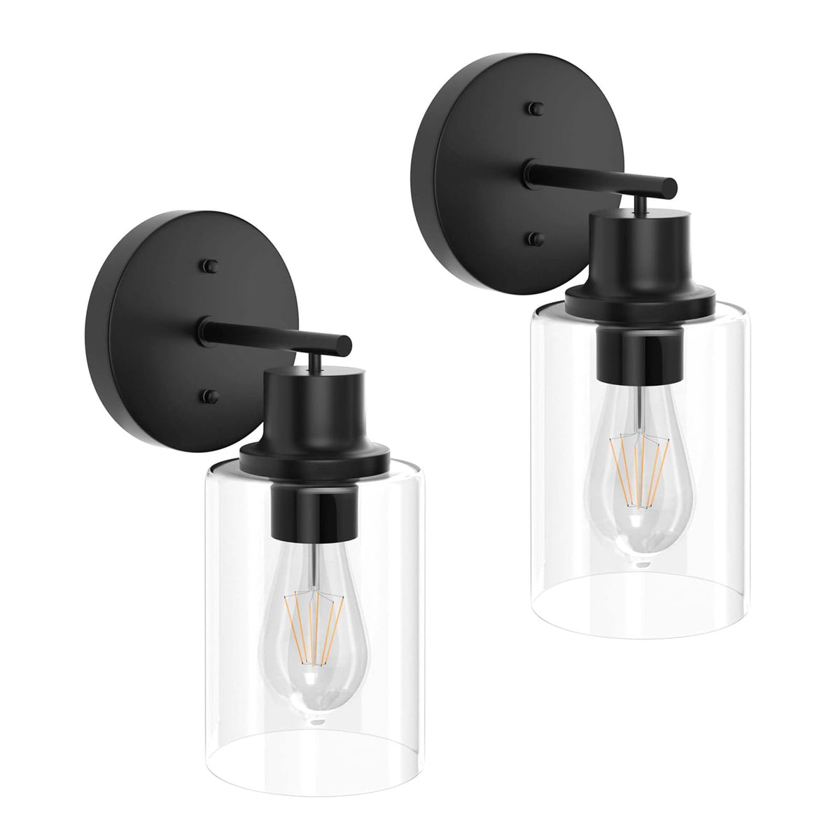 Gordnwe Set Of 2 Bathroom Wall Sconce, Matte Black Vanity Light, Modern Wall Light Fixture With Clear Glass Shade And E26 Bulb B