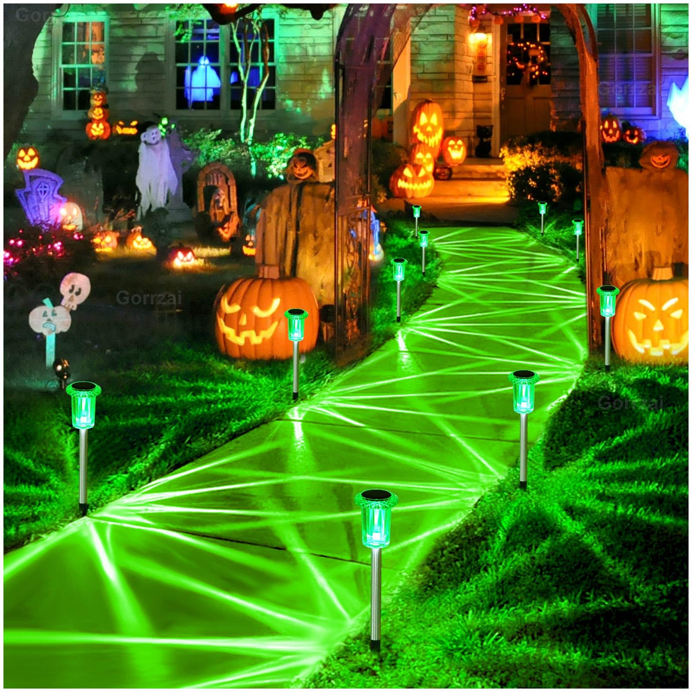 Q: Can these lights be used for Halloween decorations?A: Absolutely! The purple color of the Gorrzai Solar Lights adds a spooky ambiance, making them perfect for Halloween decorations in your garden, driveway, or walkway.