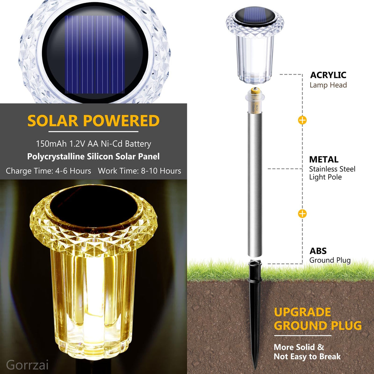Gorrzai Solar Lights Outdoor 15 Pack Solar Pathway Lights Led Waterproof Stainless Steel Garden Stake For Yard, Outside, Walkway