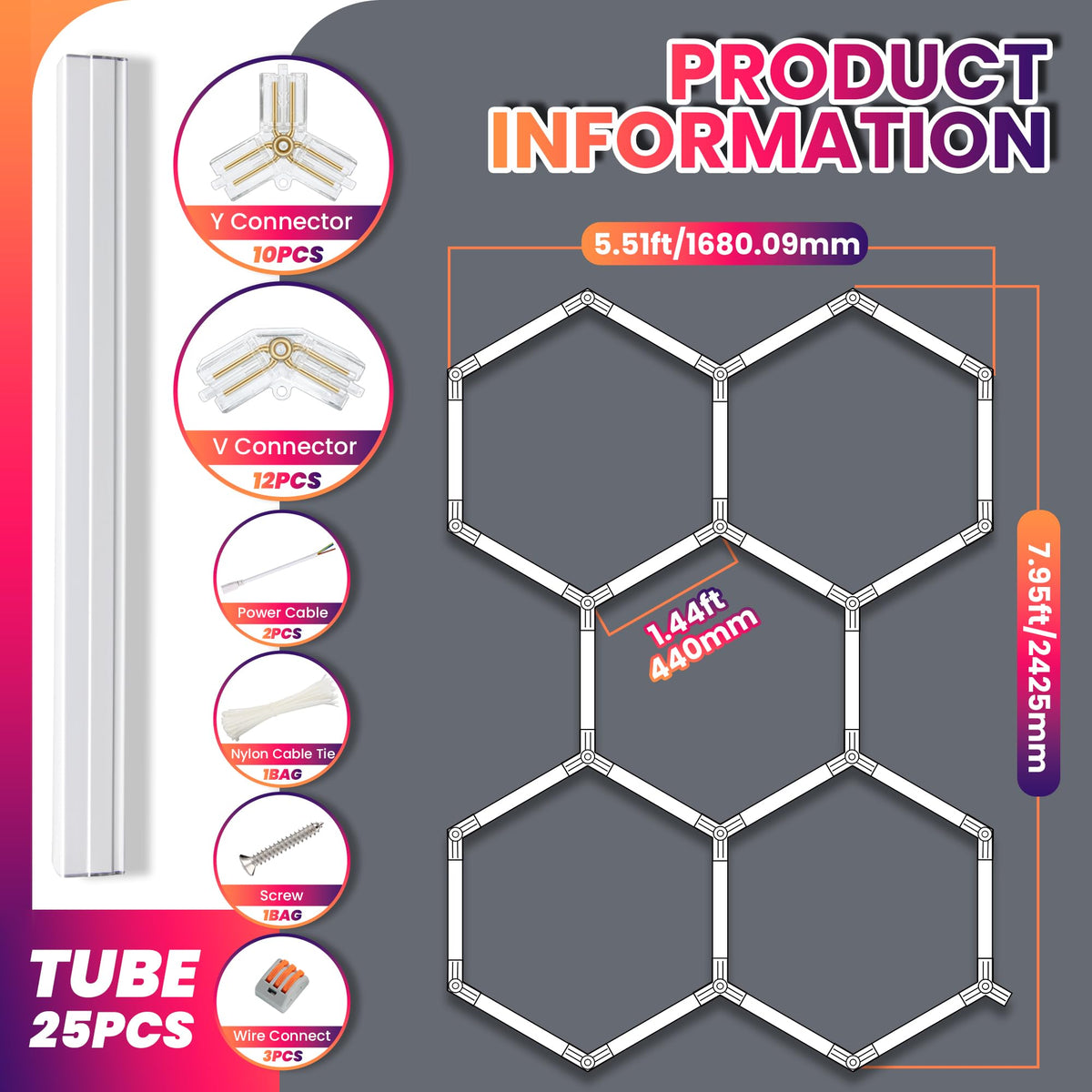 Goslarlit Hexagon Led Garage Light, 25 Pack Led Shop Ceiling Lamp, 144W 15950Lm 6500K Daylight White, Linkable Plug-In Hexagon Lamp For Workshop Gym Car Care Warehouse 95X66Inch