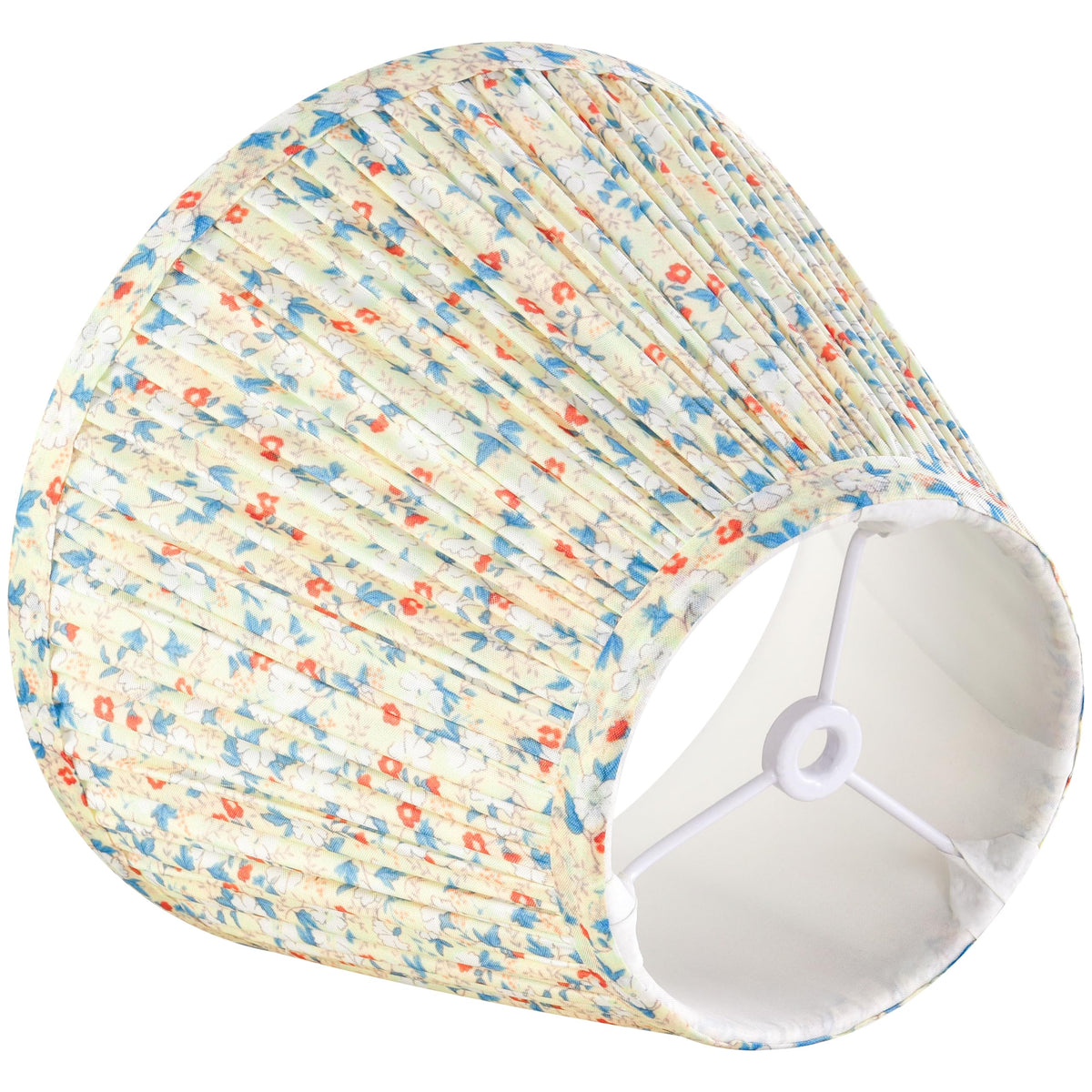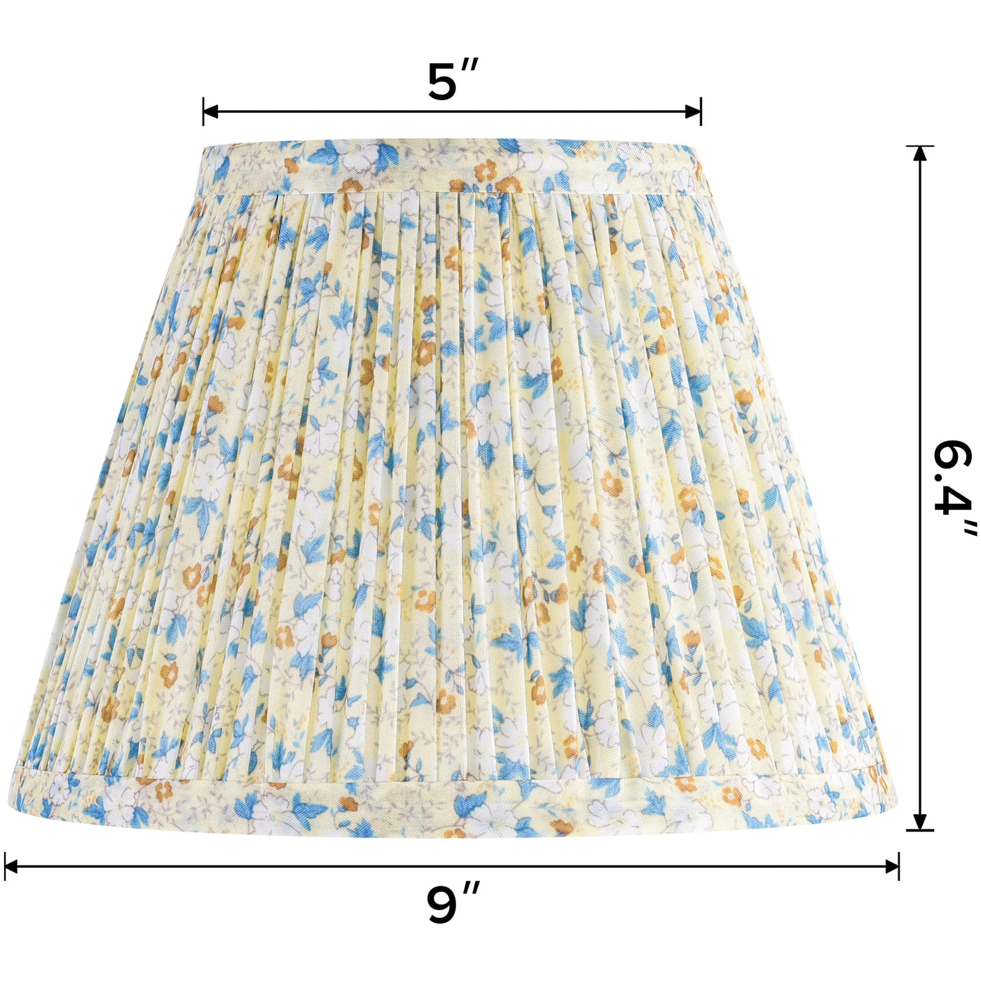 Q: What size are the GOSO small pleated floral lamp shades?A: The GOSO small pleated floral lamp shades measure 5 inches at the top diameter, 9 inches at the bottom diameter, and 6.4 inches in height, making them ideal for smaller lamps.