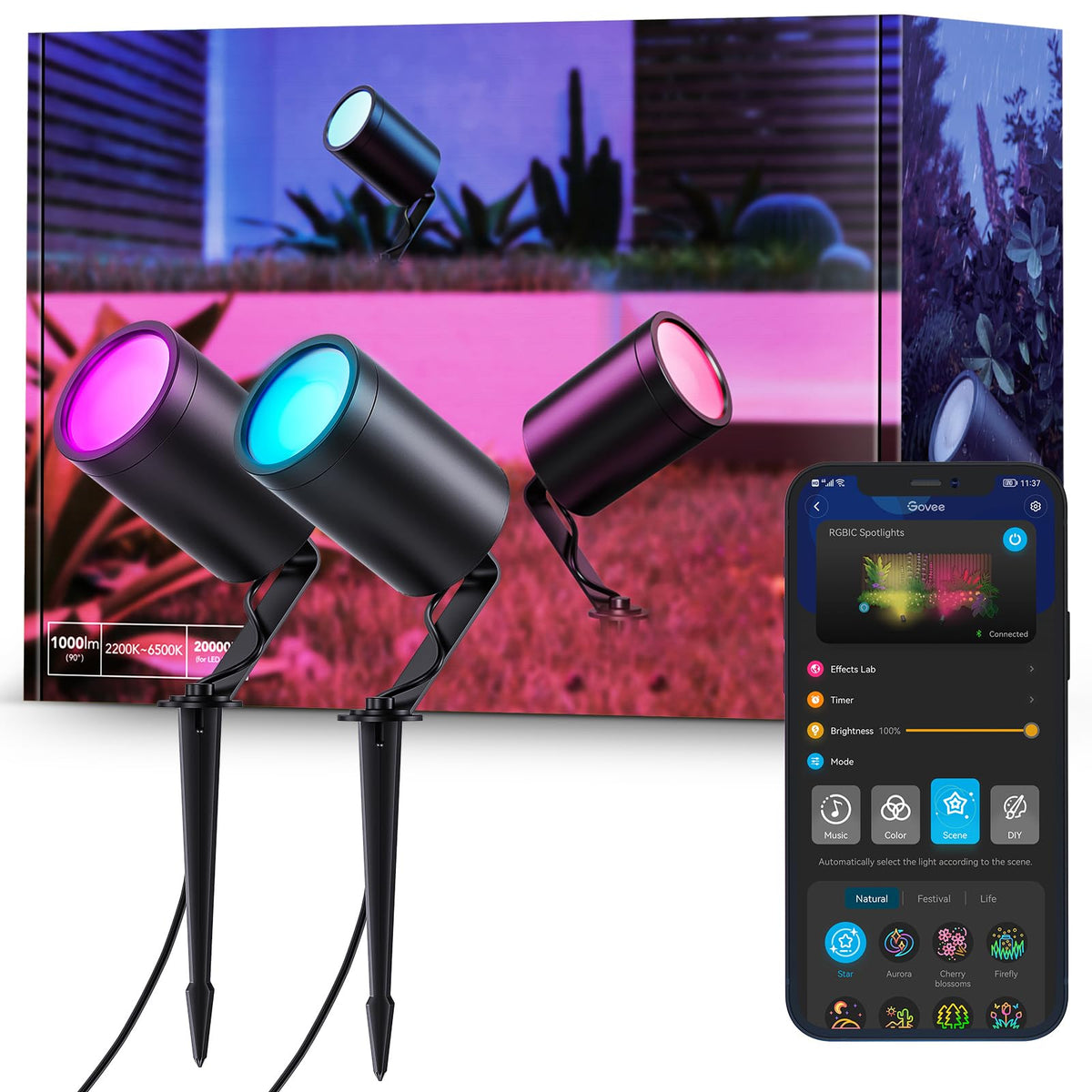 Govee 2 Pack Outdoor Spot Lights, Ip65 Waterproof Rgbic Landscape Uplights With Alexa Control