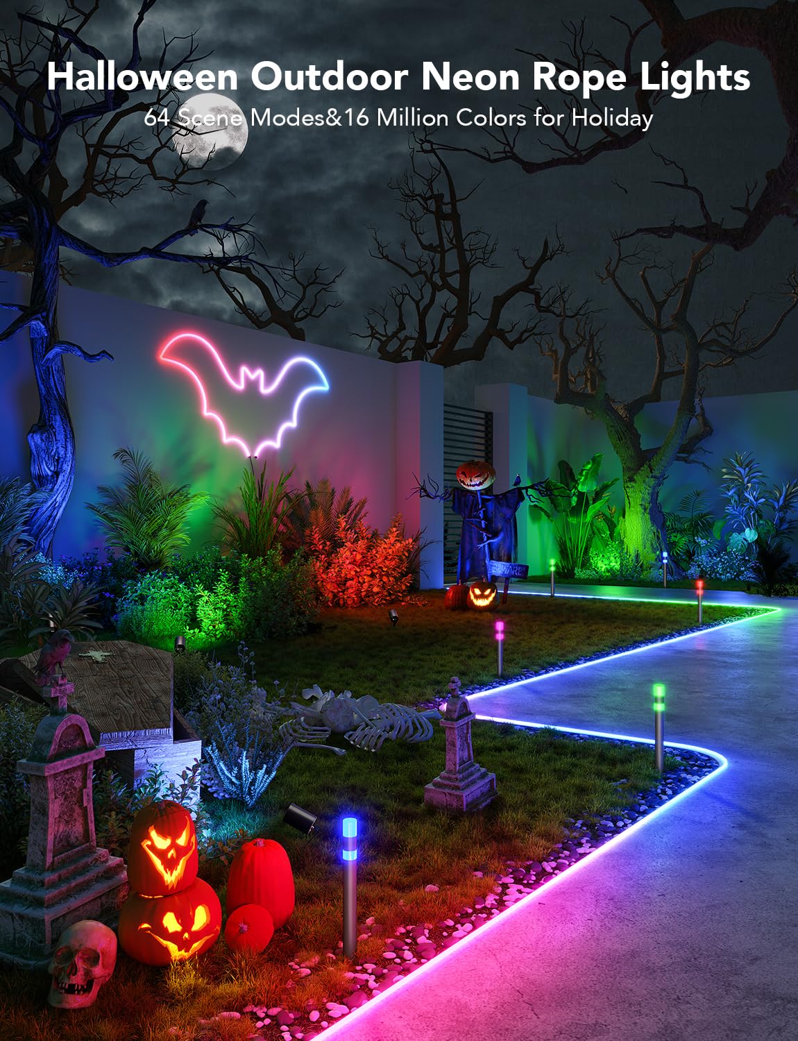 Govee Outdoor Neon Rope Lights, 32.8Ft Rgbic Ip67 Waterproof Christmas Decorations With 64 Scene Modes, Music Sync, Flexible Led Outdoor Lights, Christmas Lights Work With Alexa, Google Assistant