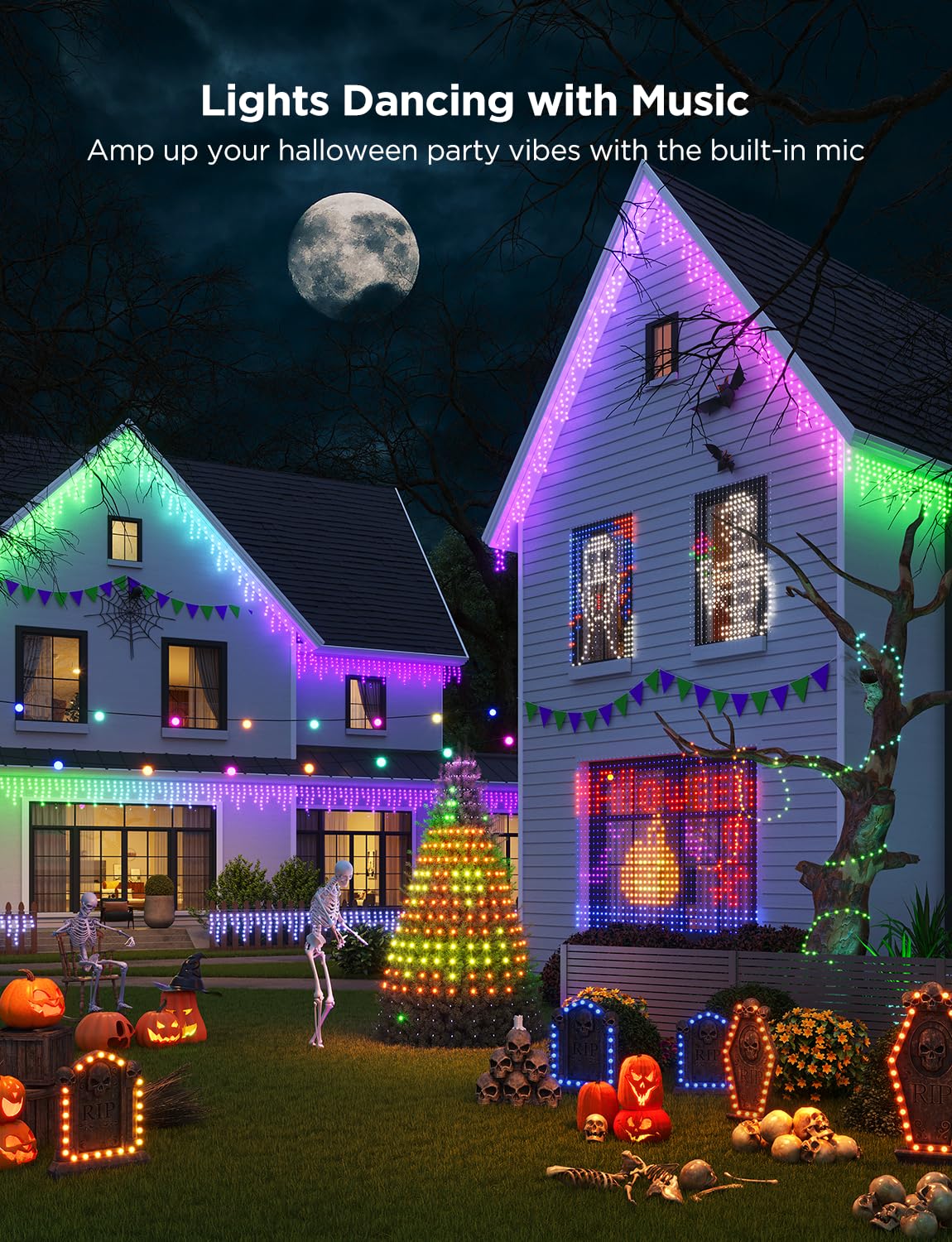 Over 200 preset scene modes and 8 music modes enable synchronized lighting with rhythm.