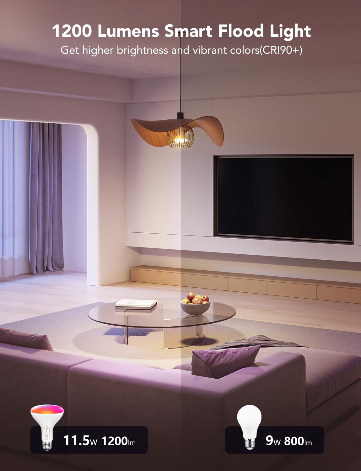 Govee Smart Light Bulbs, 1200 Lumens Dimmable Br30 Bulbs, Rgbww Color Changing Light Bulbs, Wifi & Bluetooth Led Bulbs, 16 Million Colors, Music Sync, Compatible With Alexa, Google Assistant, 6 Pack