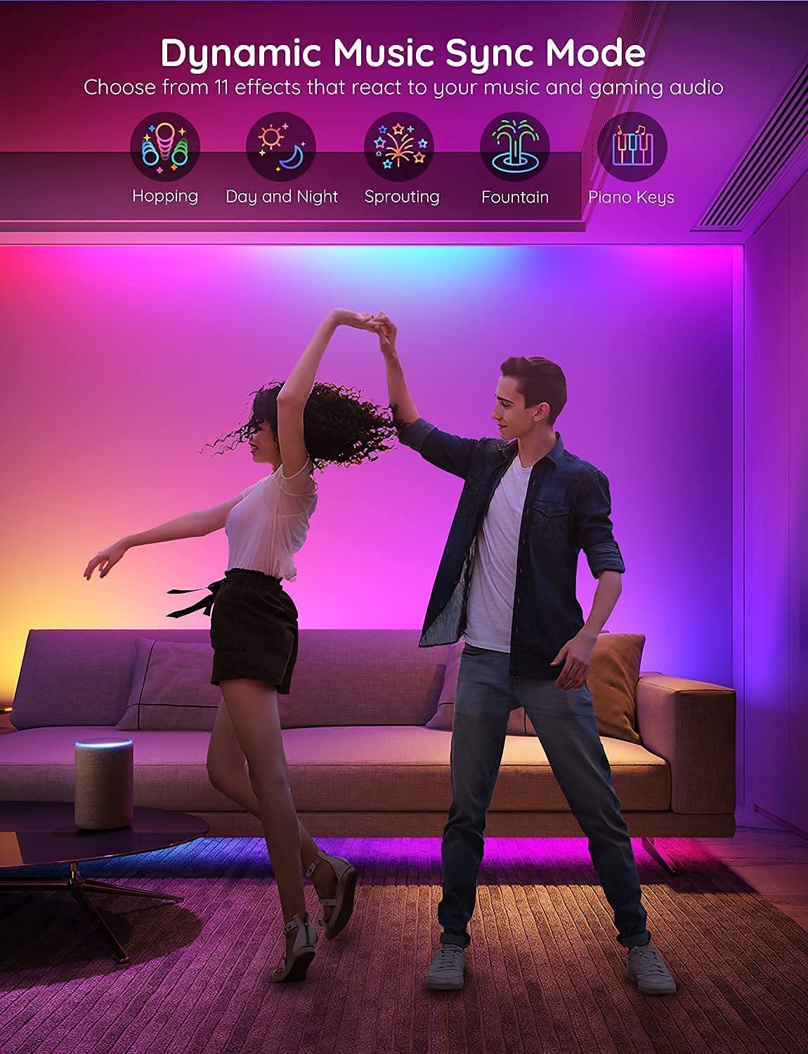 Upgraded Music Sync Mode: The integrated high-sensitivity microphone allows these LED strip lights to sync with music and gaming audio, providing 11 music modes that enhance your entertainment experience.